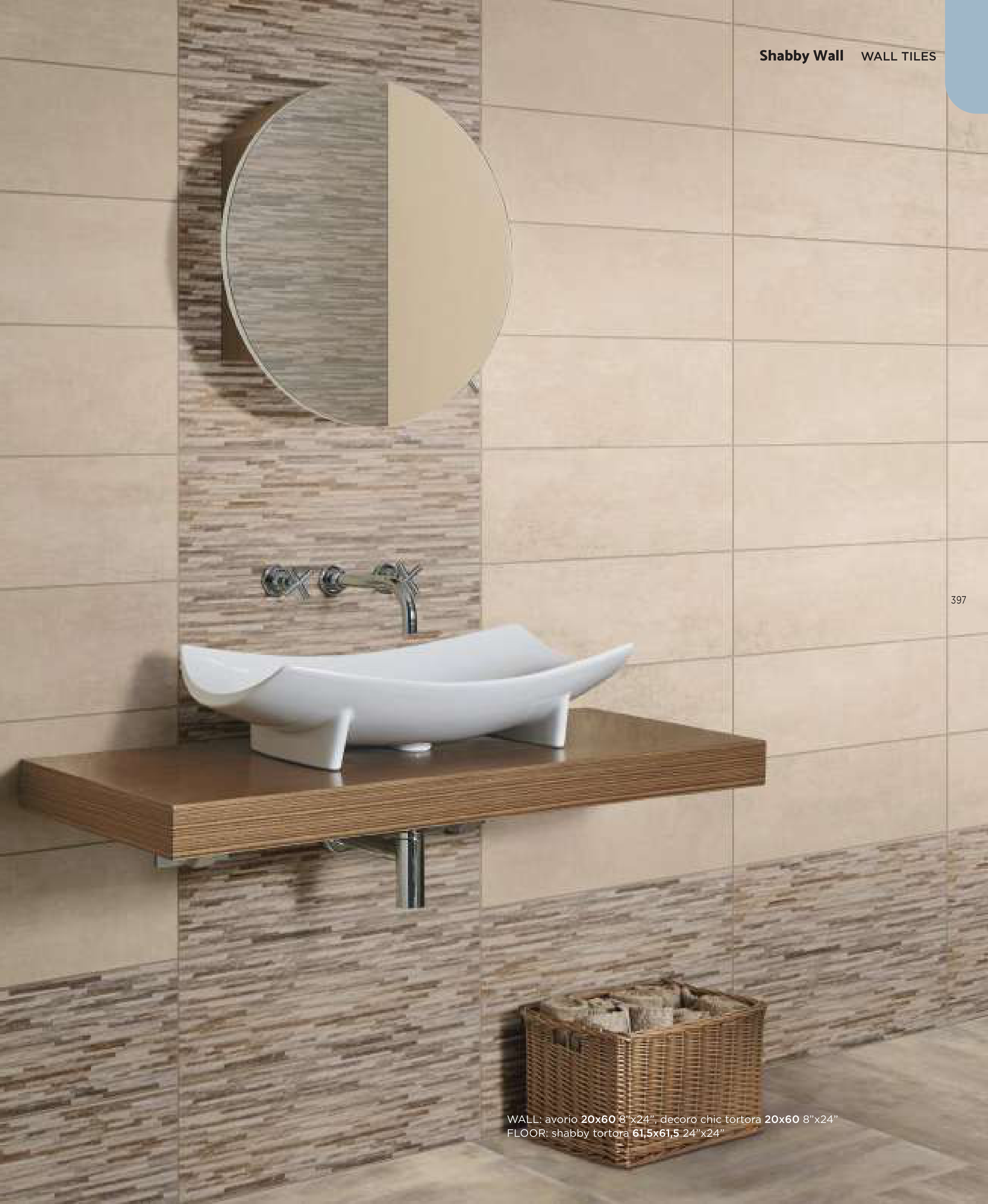 WALL: avorio 20x60 8”x24”, decoro chic tortora 20x60 8”x24”