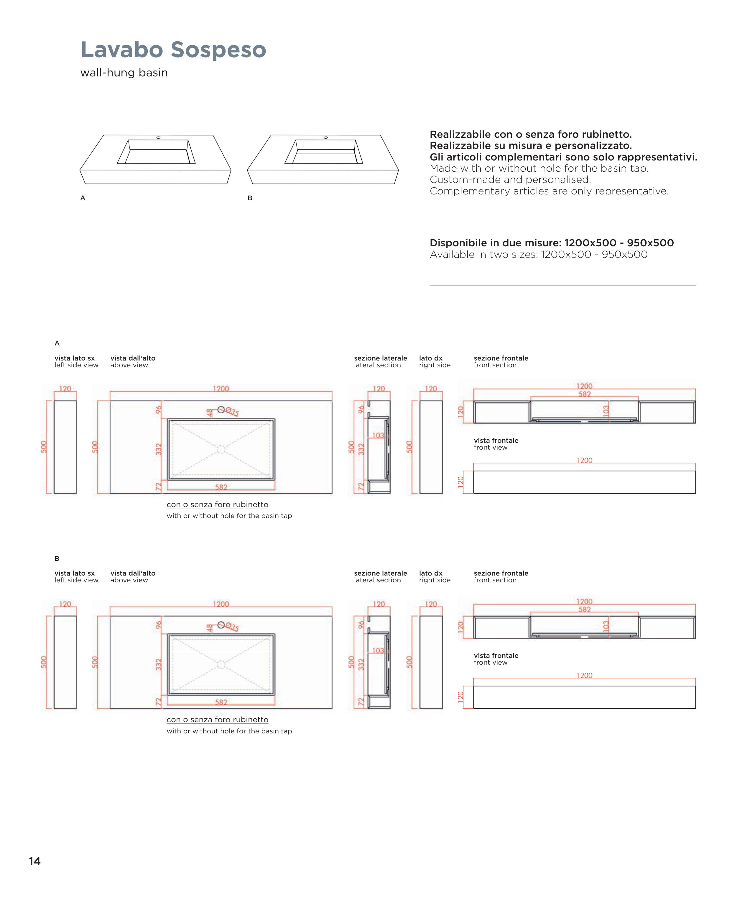 Realizzabile con o senza foro rubinetto.