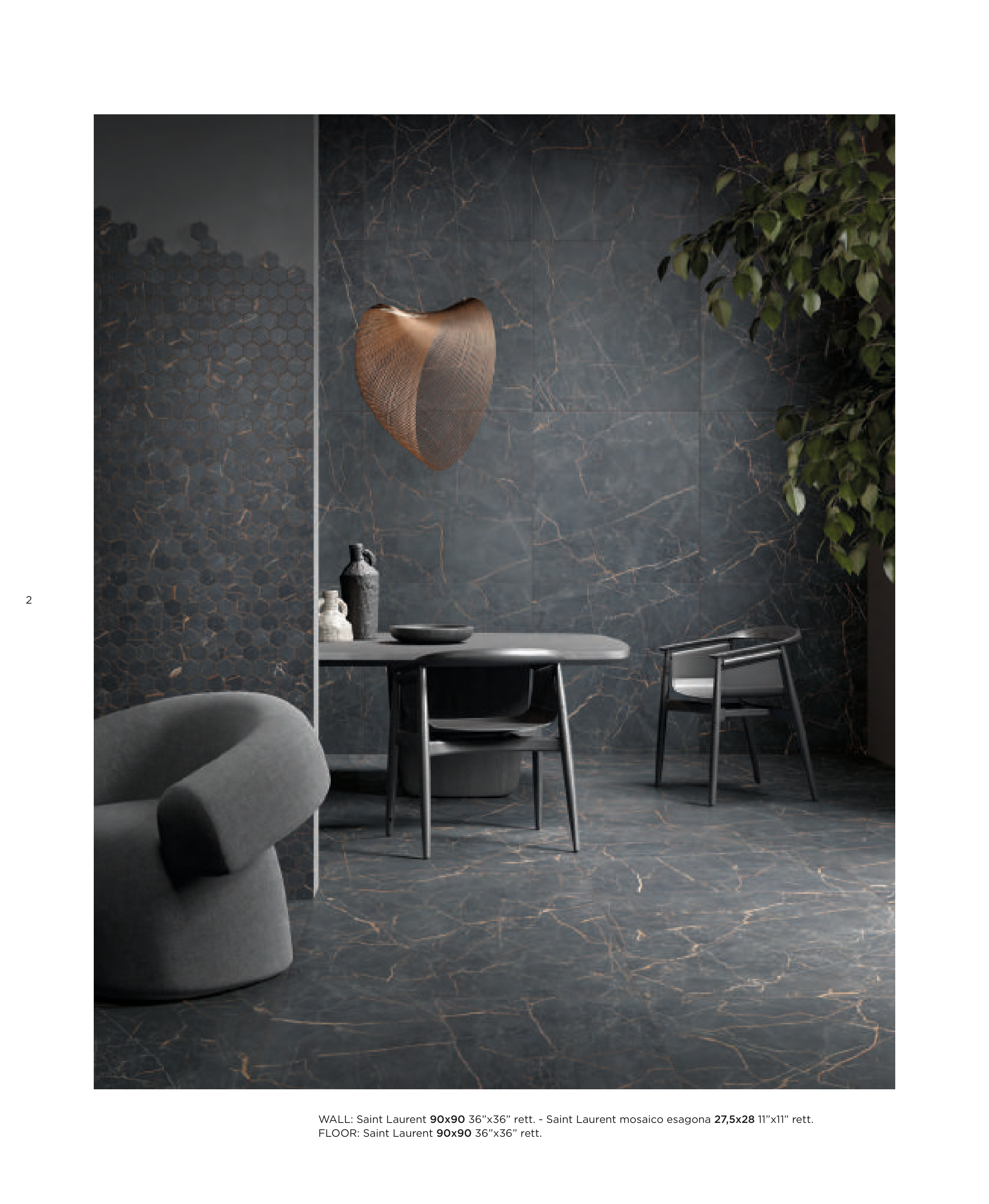 WALL: Saint Laurent 90x90 36”x36” rett. - Saint Laurent mosaico esagona 27,5x28 11”x11” rett.