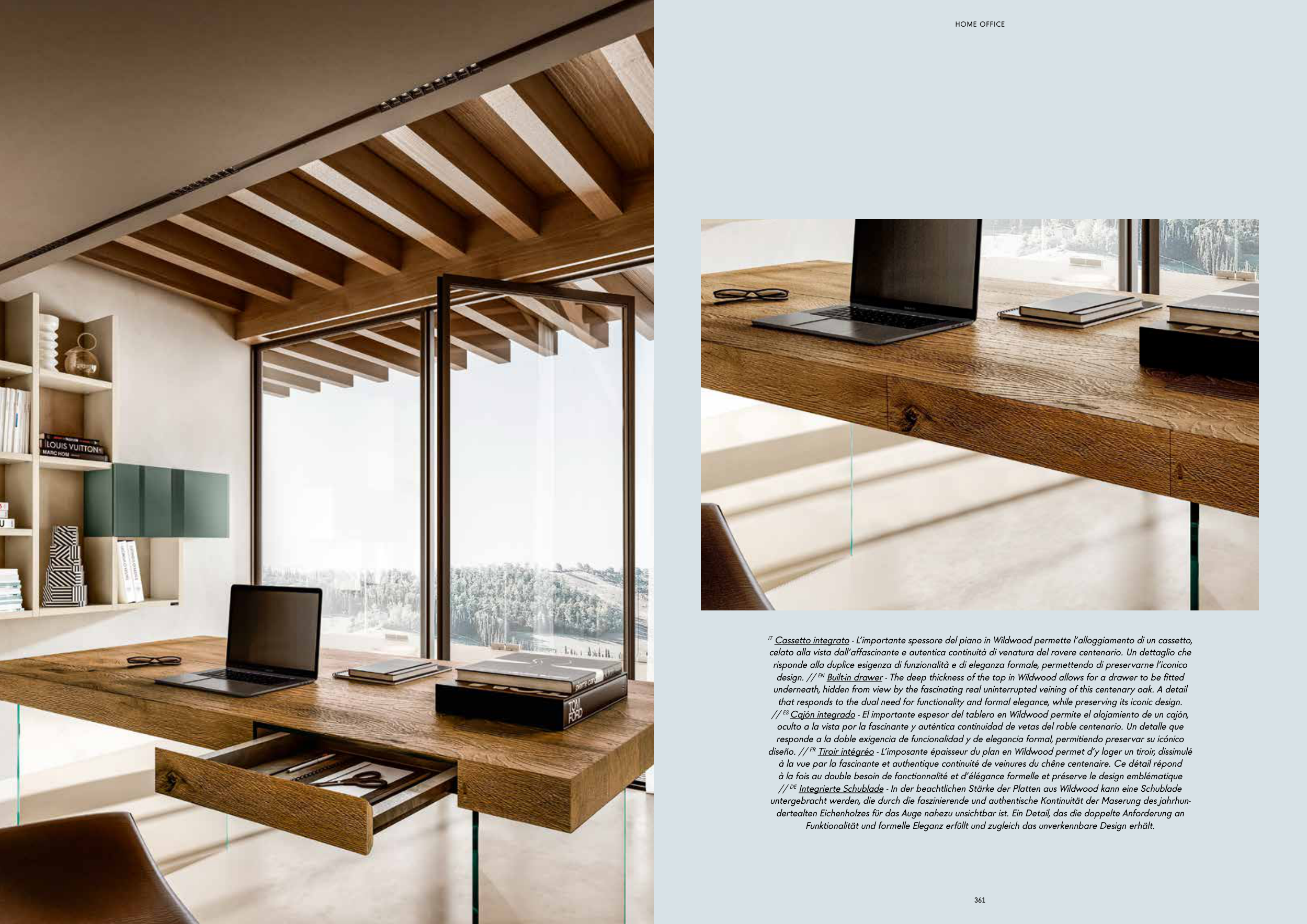 IT Cassetto integrato - L’importante spessore del piano in Wildwood permette l’alloggiamento di un cassetto,