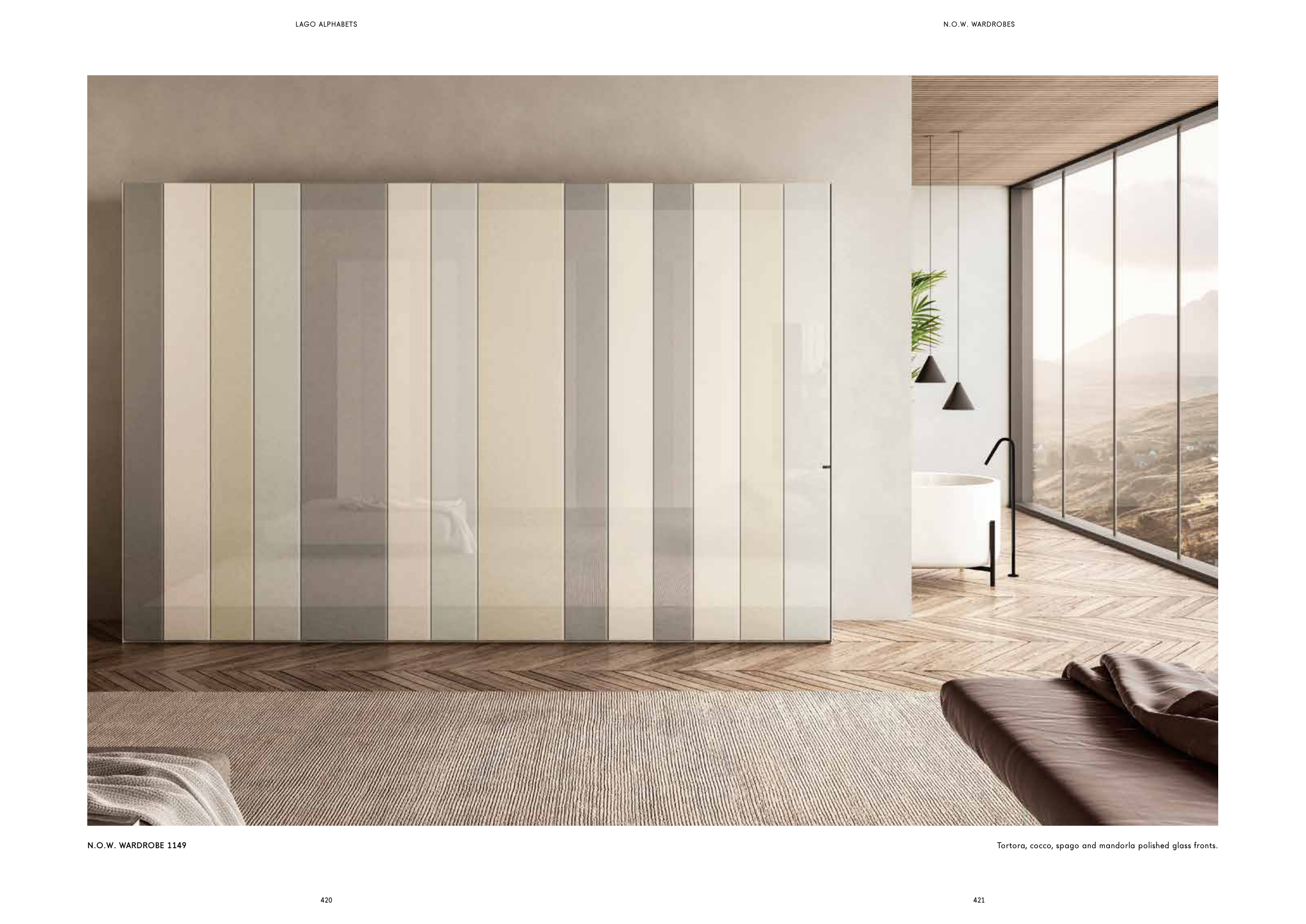 Tortora, cocco, spago and mandorla polished glass fronts.