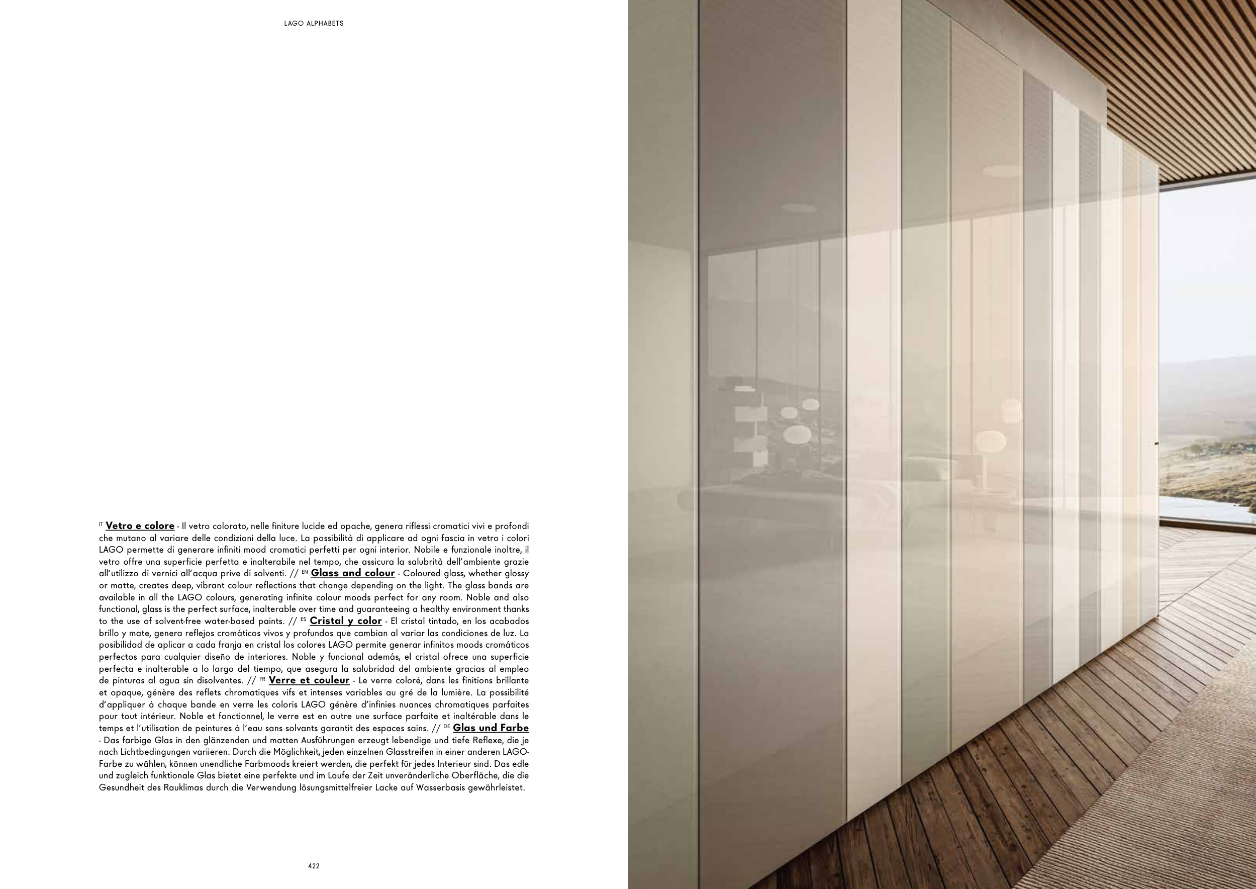 d’appliquer à chaque bande en verre les coloris LAGO génère d’infinies nuances chromatiques parfaites
