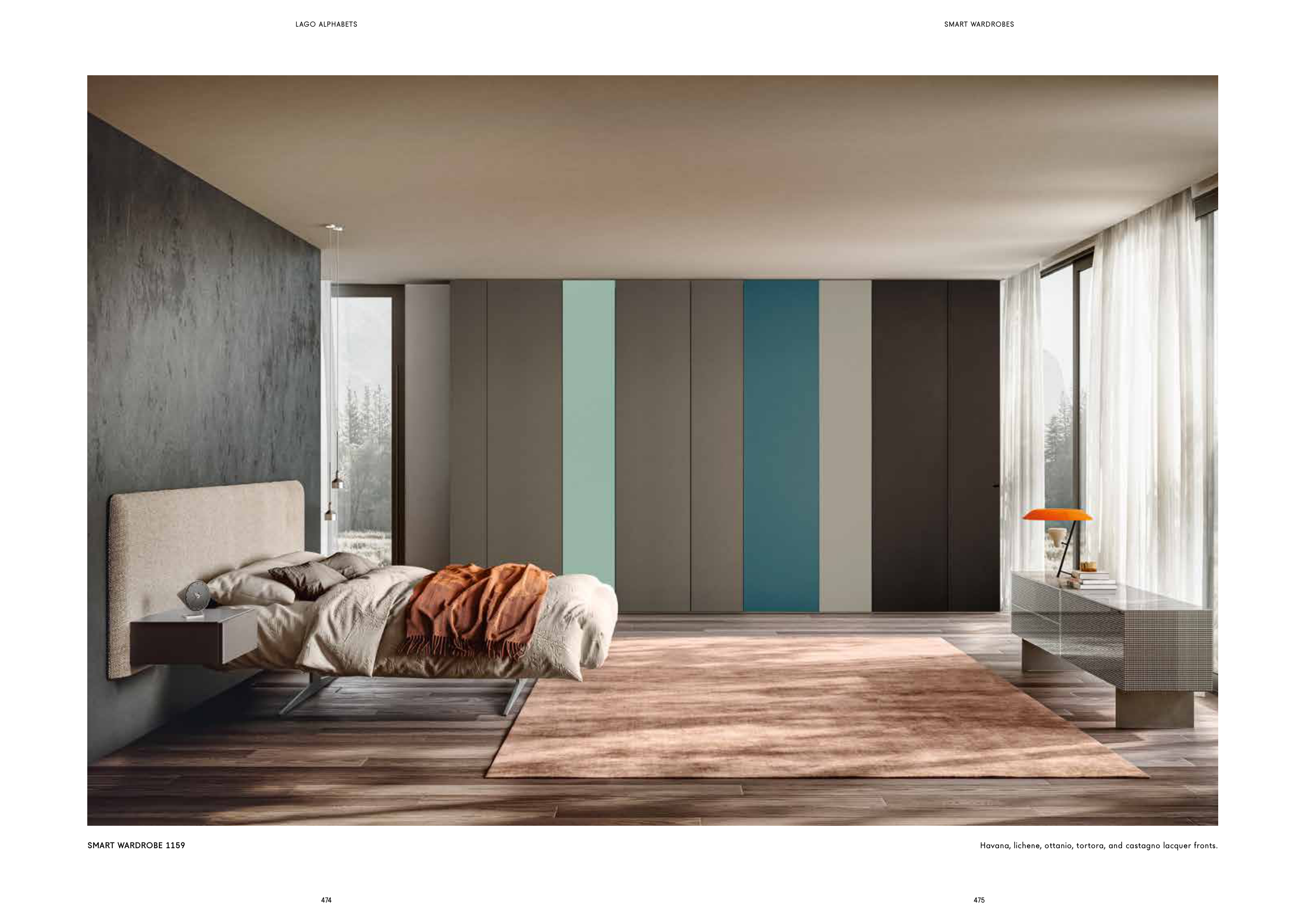 Havana, lichene, ottanio, tortora, and castagno lacquer fronts.