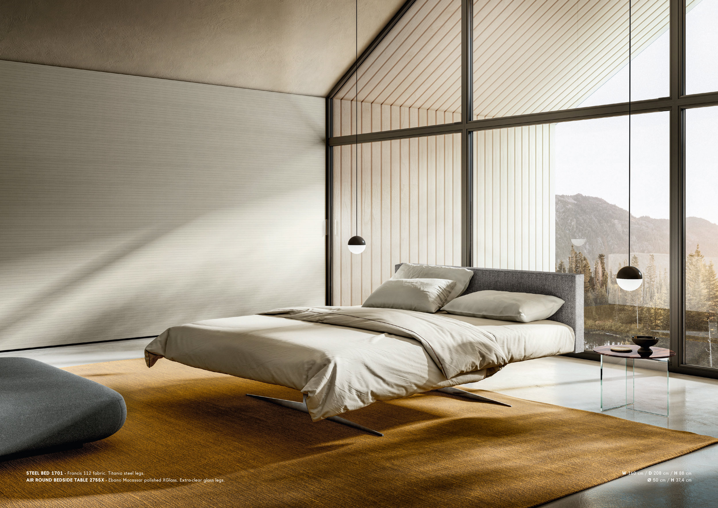 STEEL BED 1701 - Francis 112 fabric. Titanio steel legs.
