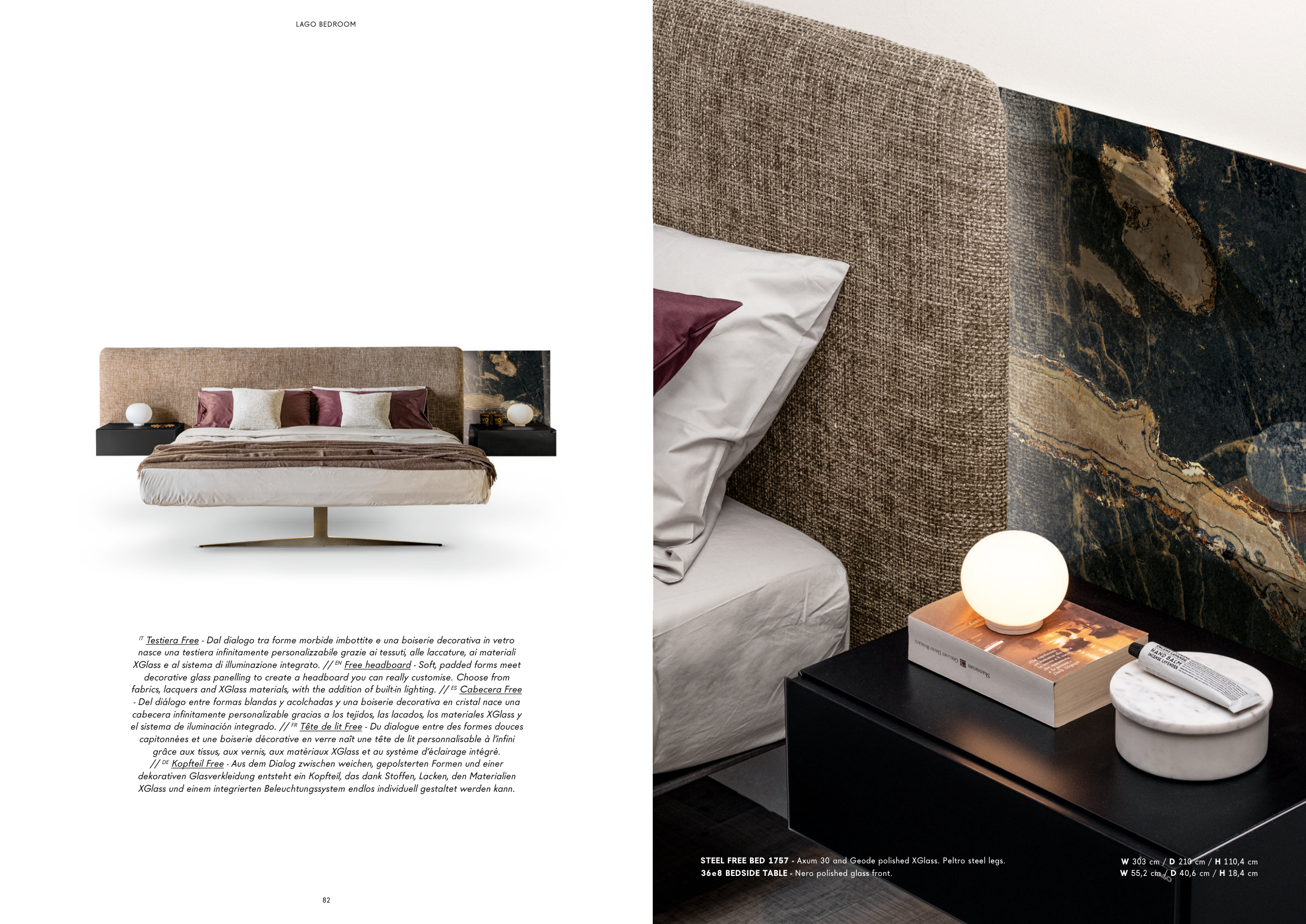 XGlass e al sistema di illuminazione integrato. // EN Free headboard - Soft, padded forms meet