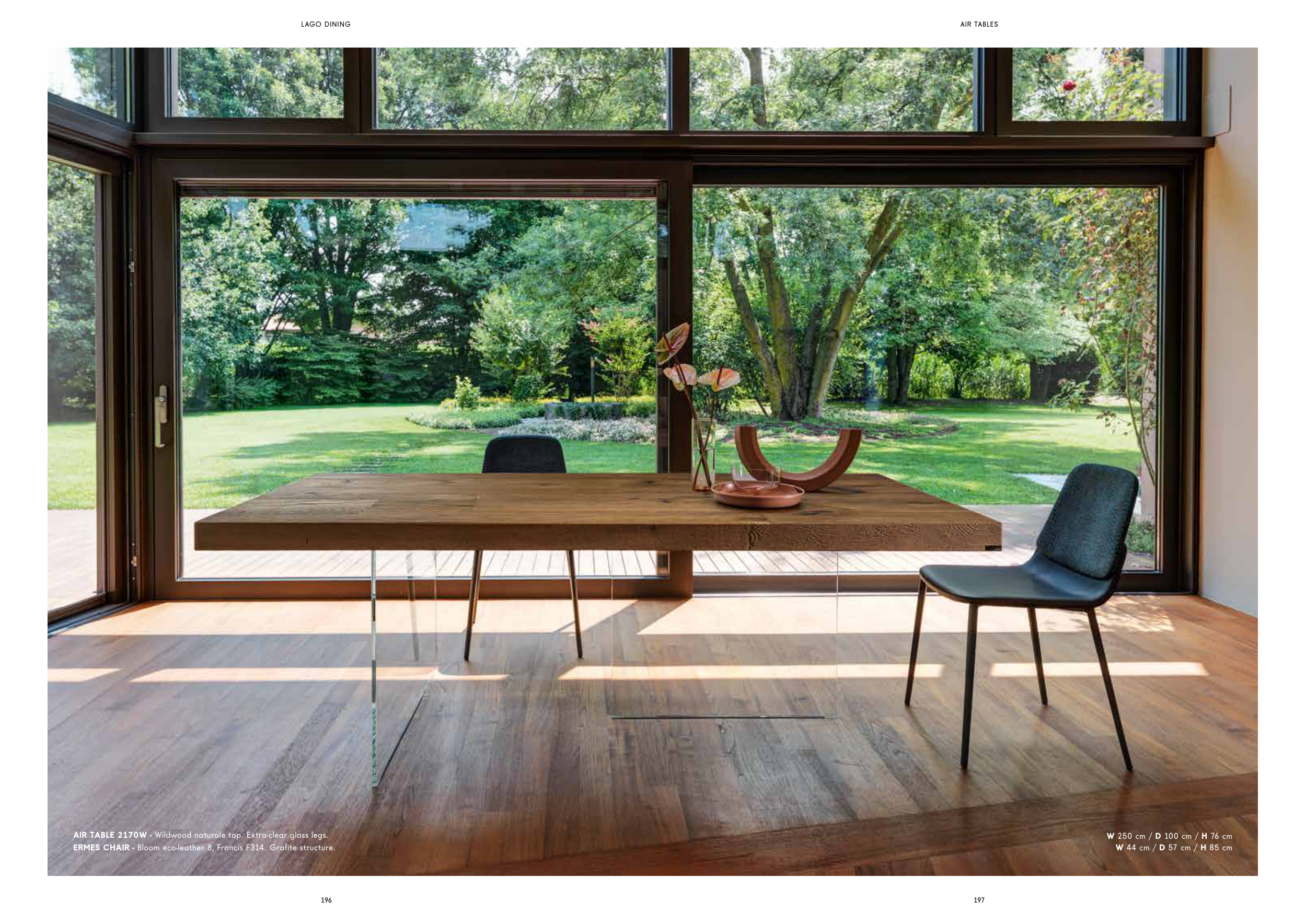 AIR TABLE 2170W - Wildwood naturale top. Extra-clear glass legs.