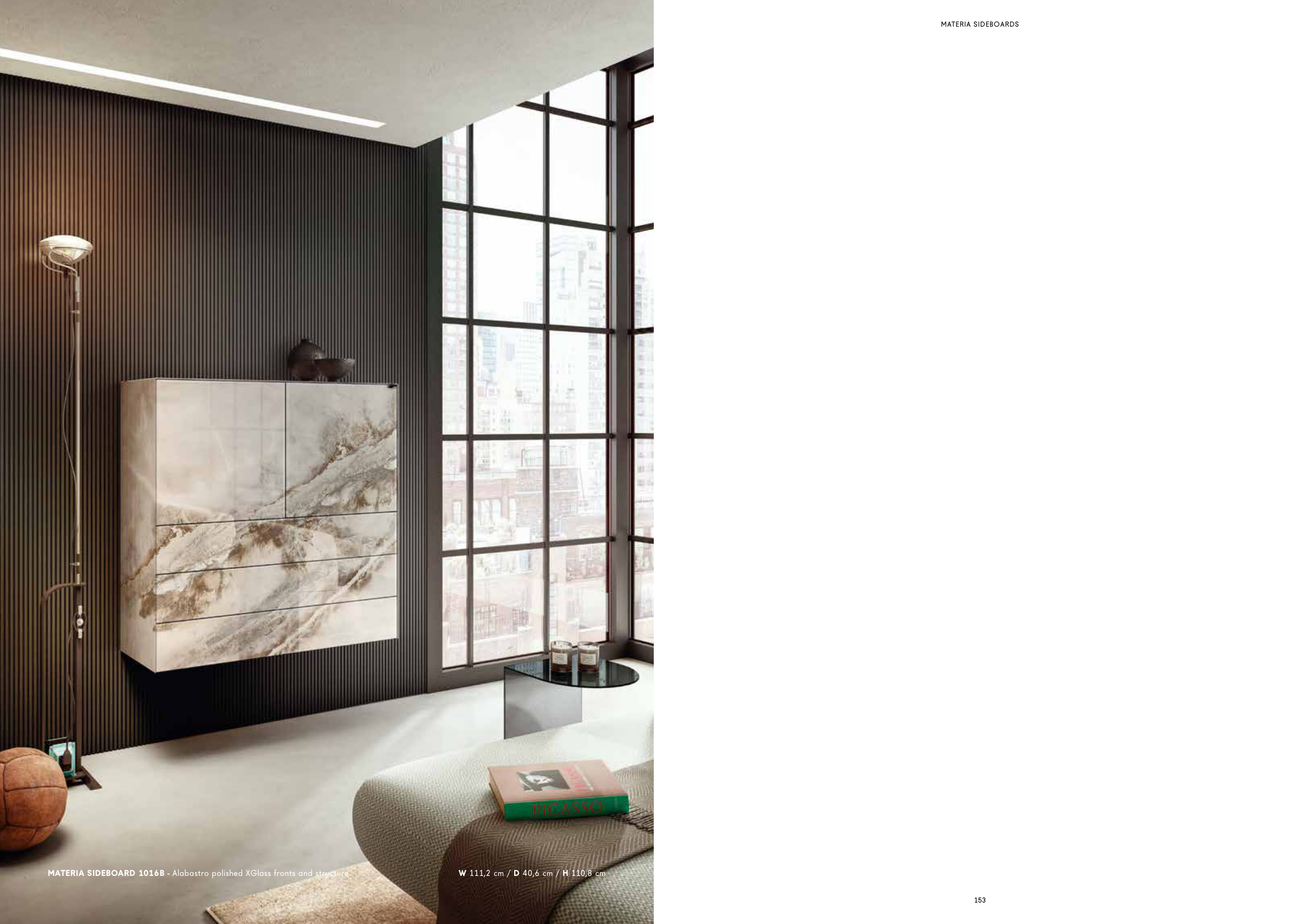 MATERIA SIDEBOARD 1016B - Alabastro polished XGlass fronts and structure.