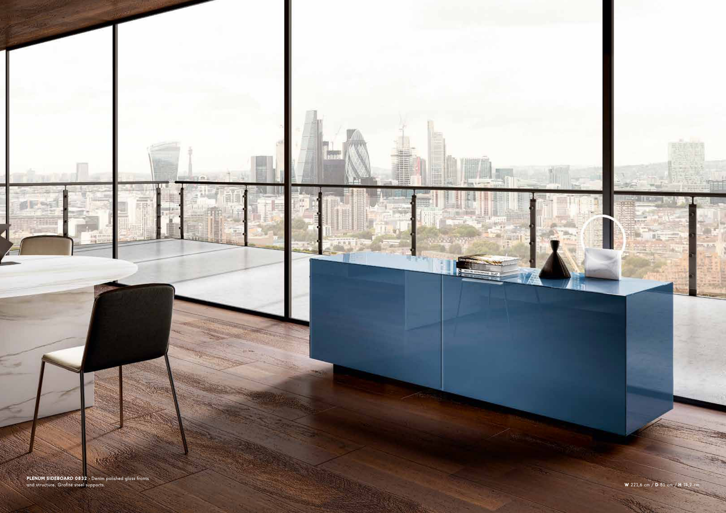 PLENUM SIDEBOARD 0832 - Denim polished glass fronts