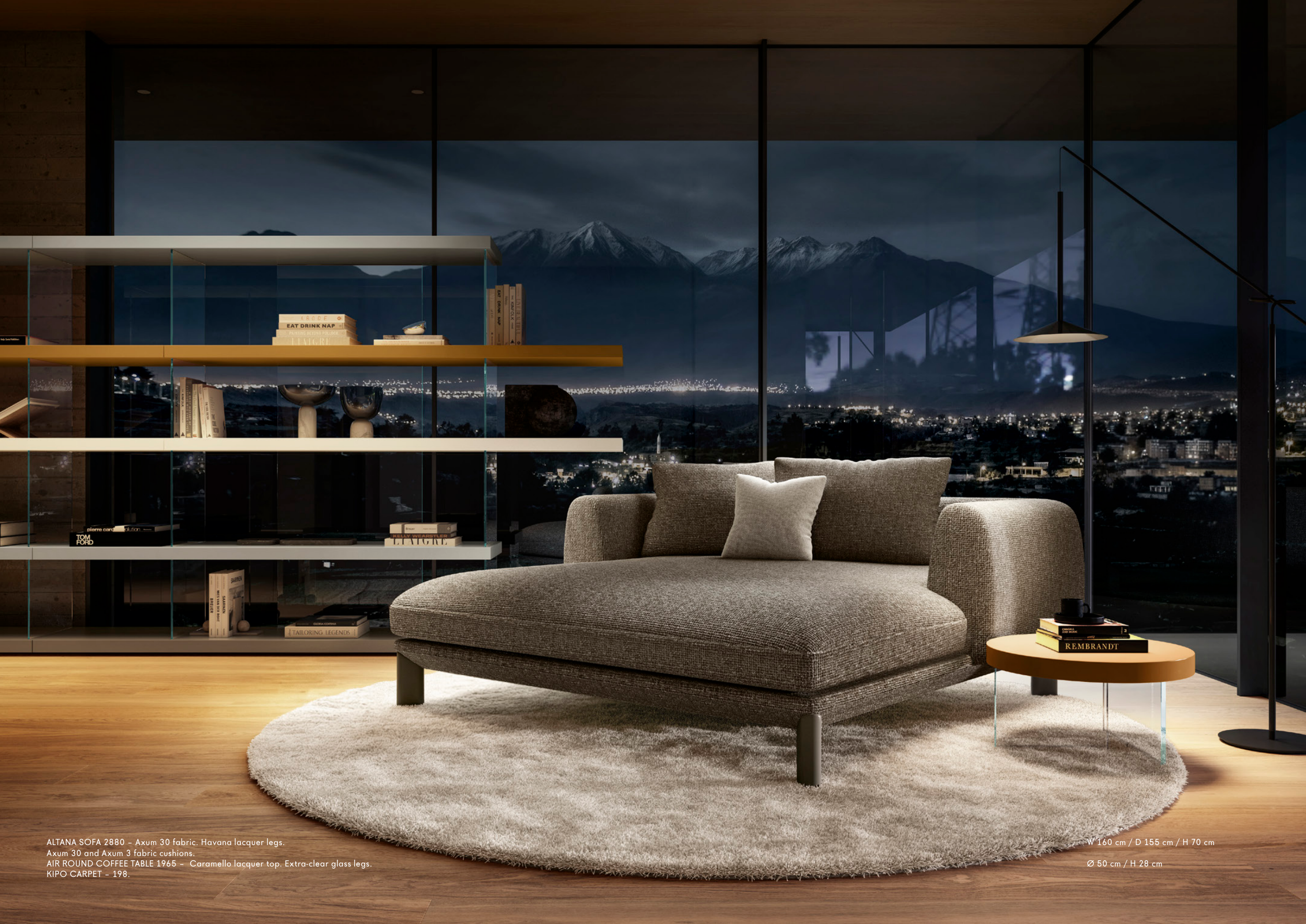 ALTANA SOFA 2880 – Axum 30 fabric. Havana lacquer legs.