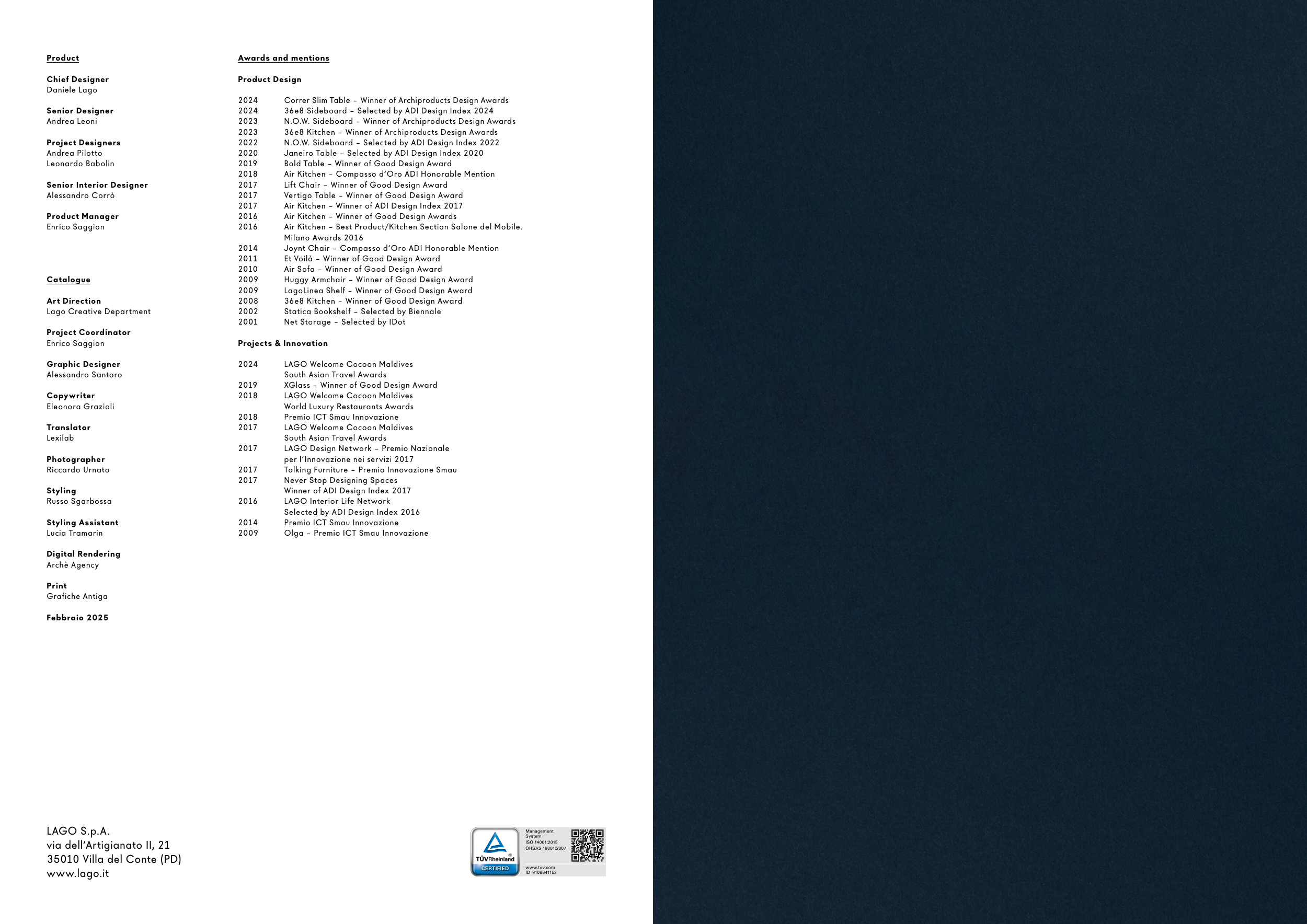 Lago Italy Lead time 80 days