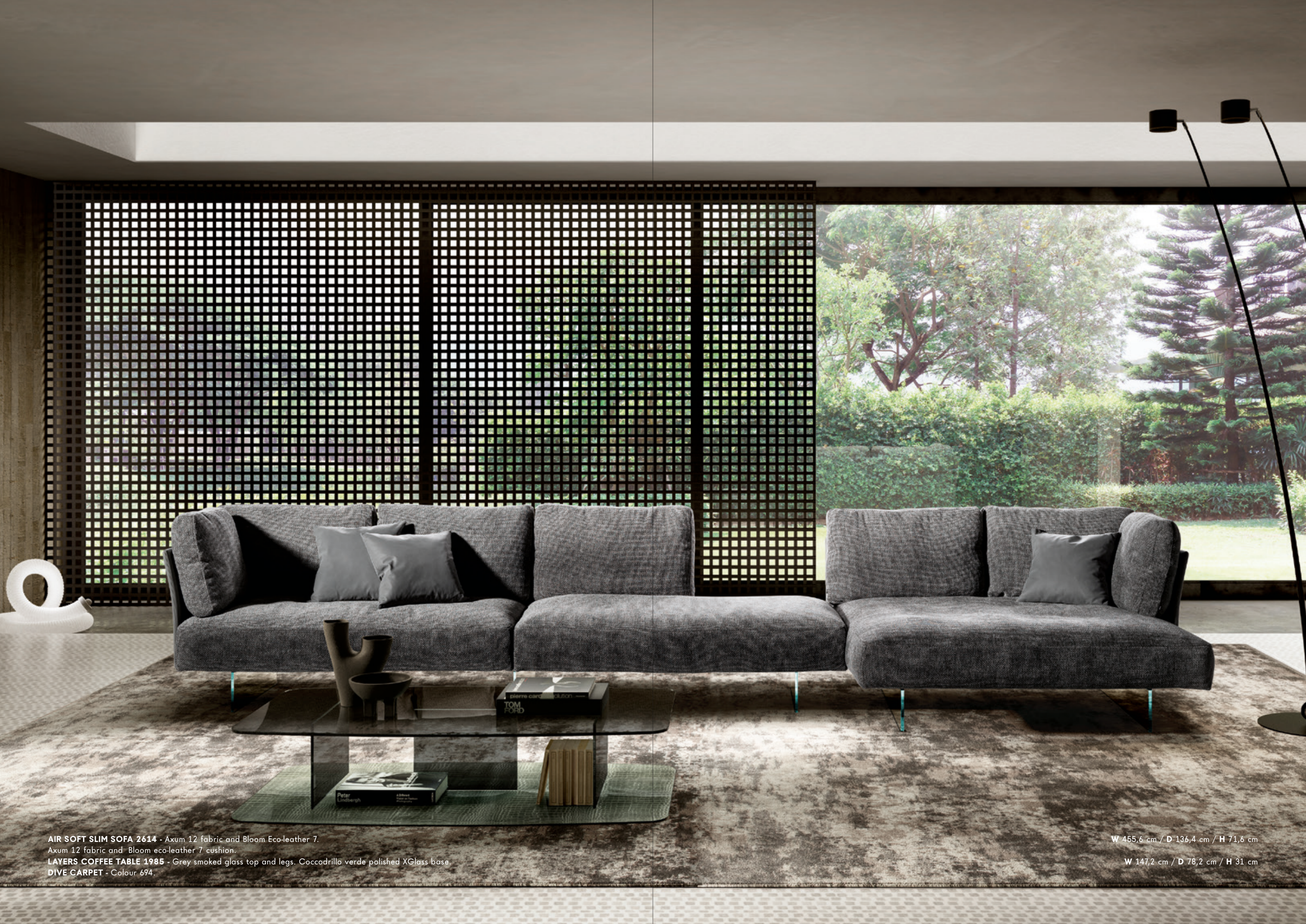 W 455,6 cm / D 136,4 cm / H 71,6 cm