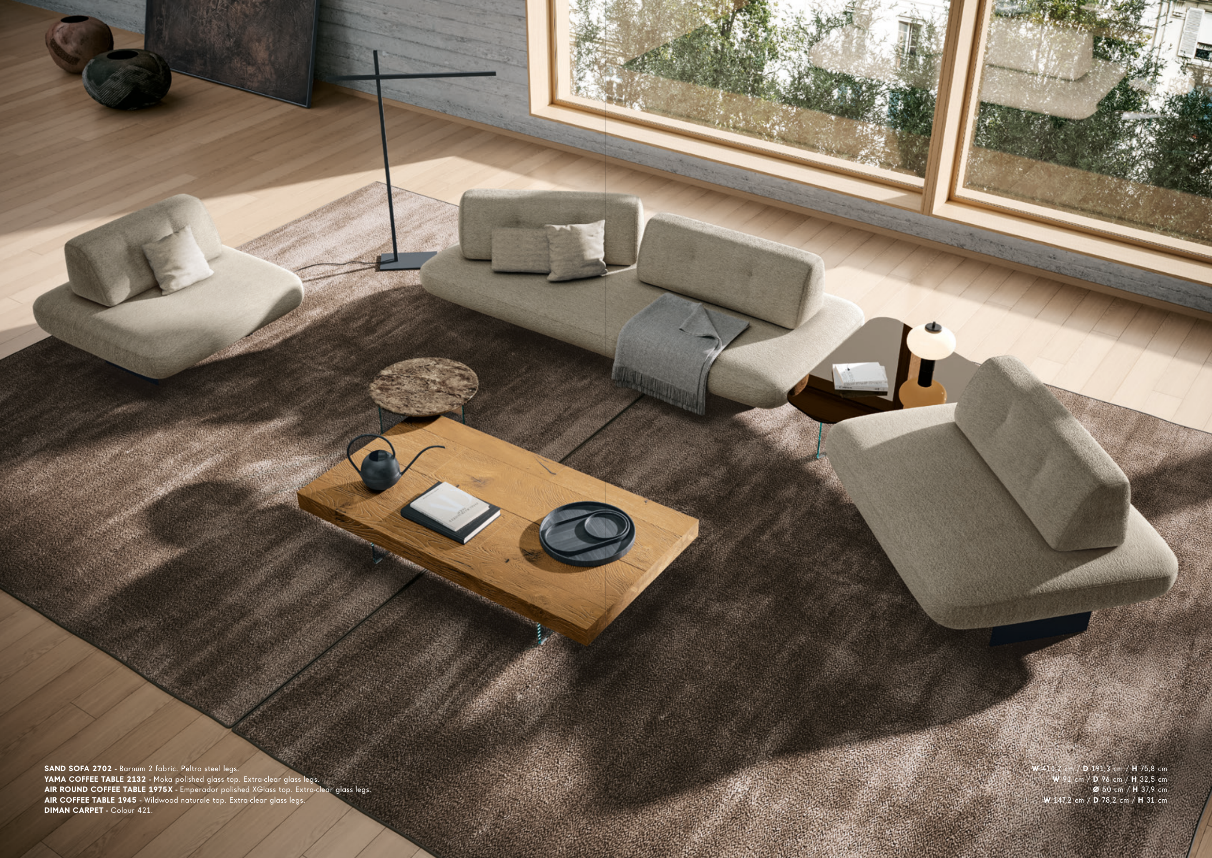 SAND SOFA 2702 - Barnum 2 fabric. Peltro steel legs.