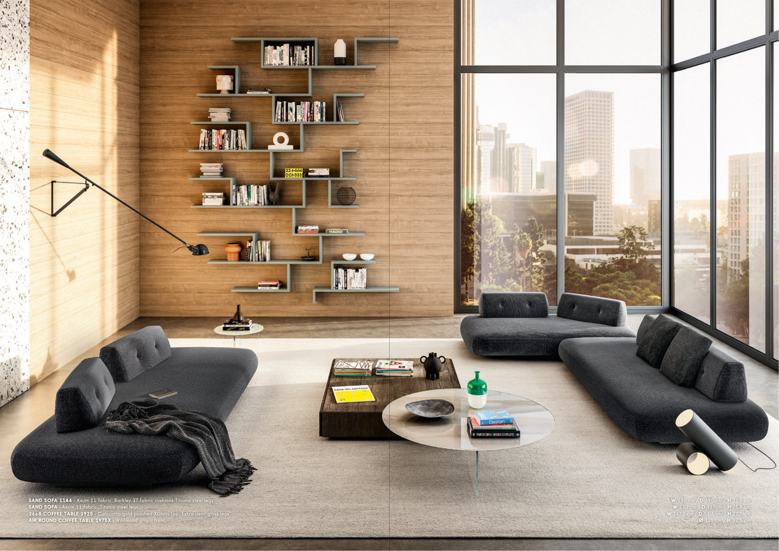 SAND SOFA - Axum 11 fabric. Titanio steel legs.