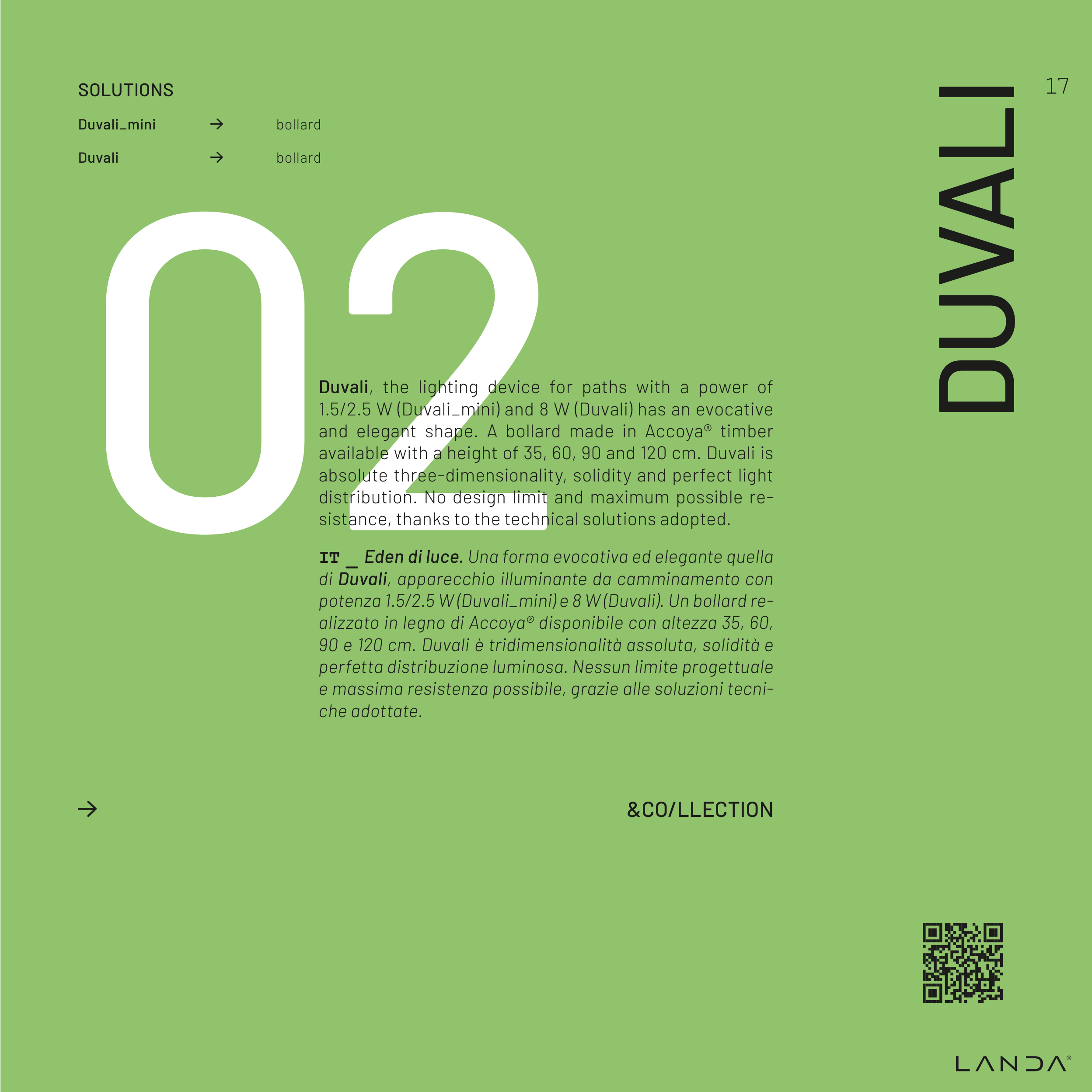potenza 1.5/2.5 W (Duvali_mini) e 8 W (Duvali). Un bollard re-
