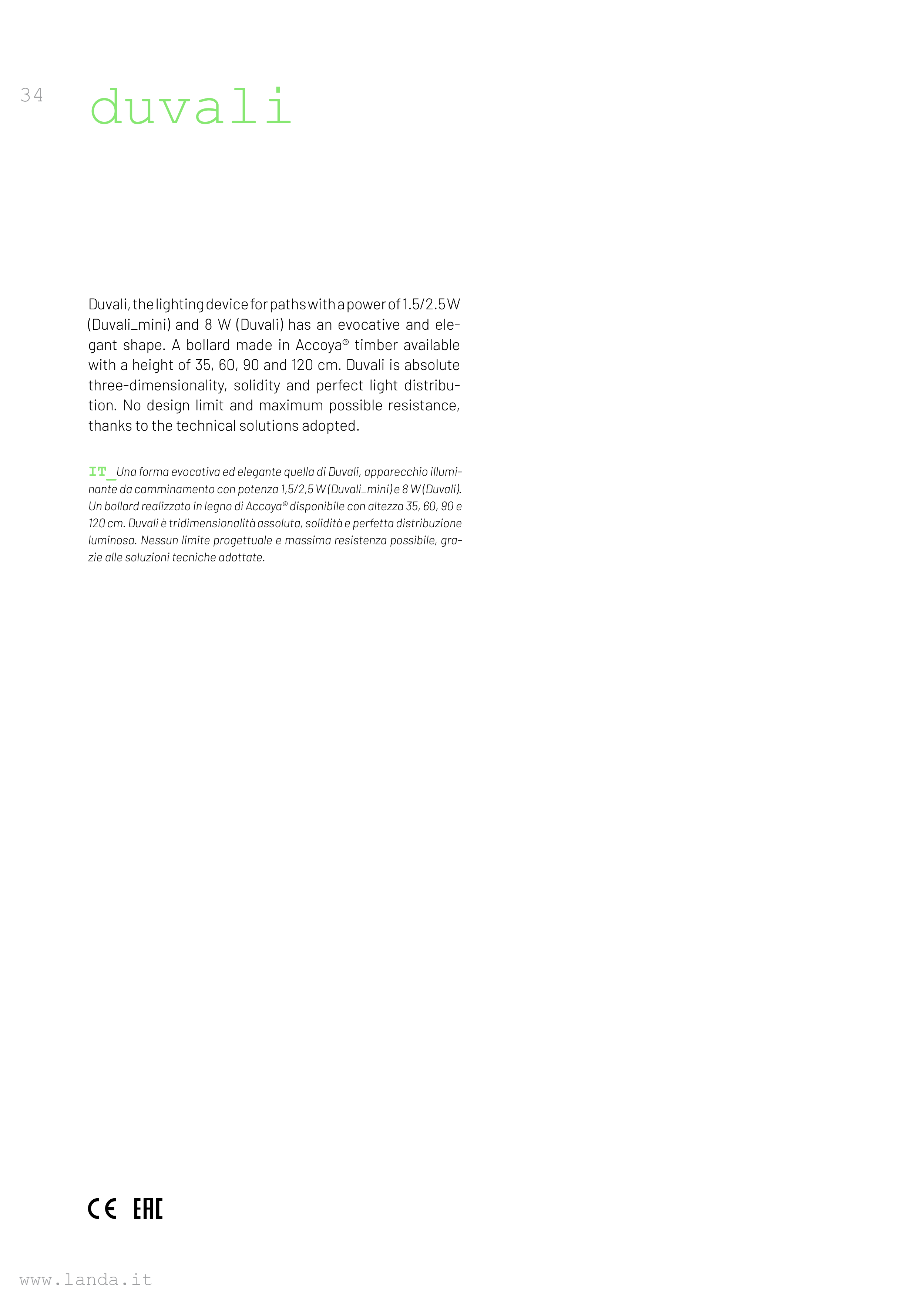 Duvali, the lighting device for paths with a power of 1.5/2.5 W