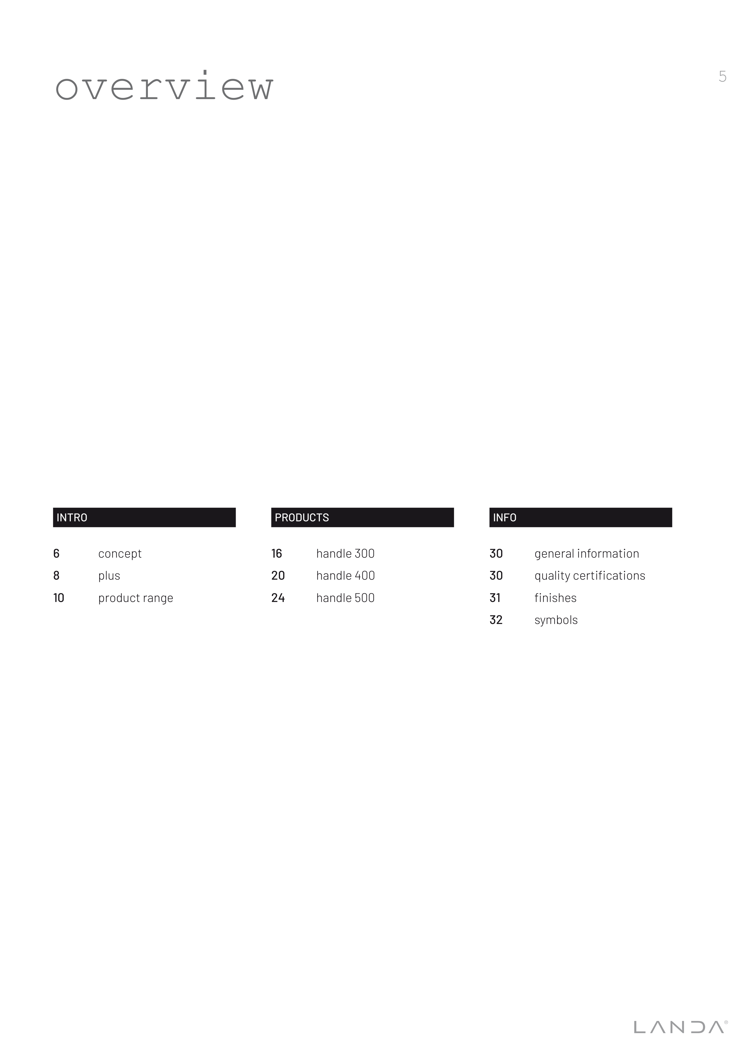 Catalogue Landa: Handle,