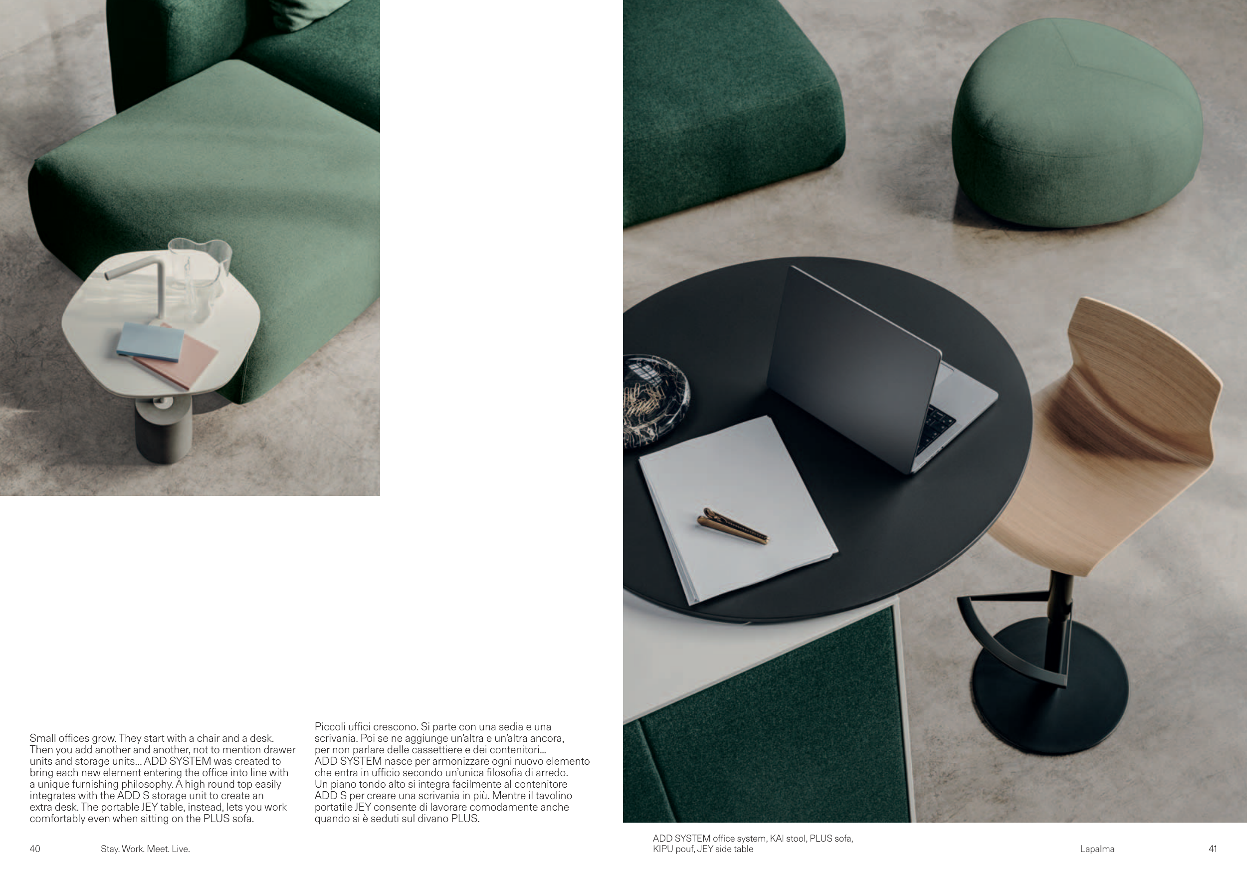 ADD SYSTEM office system, KAI stool, PLUS sofa,