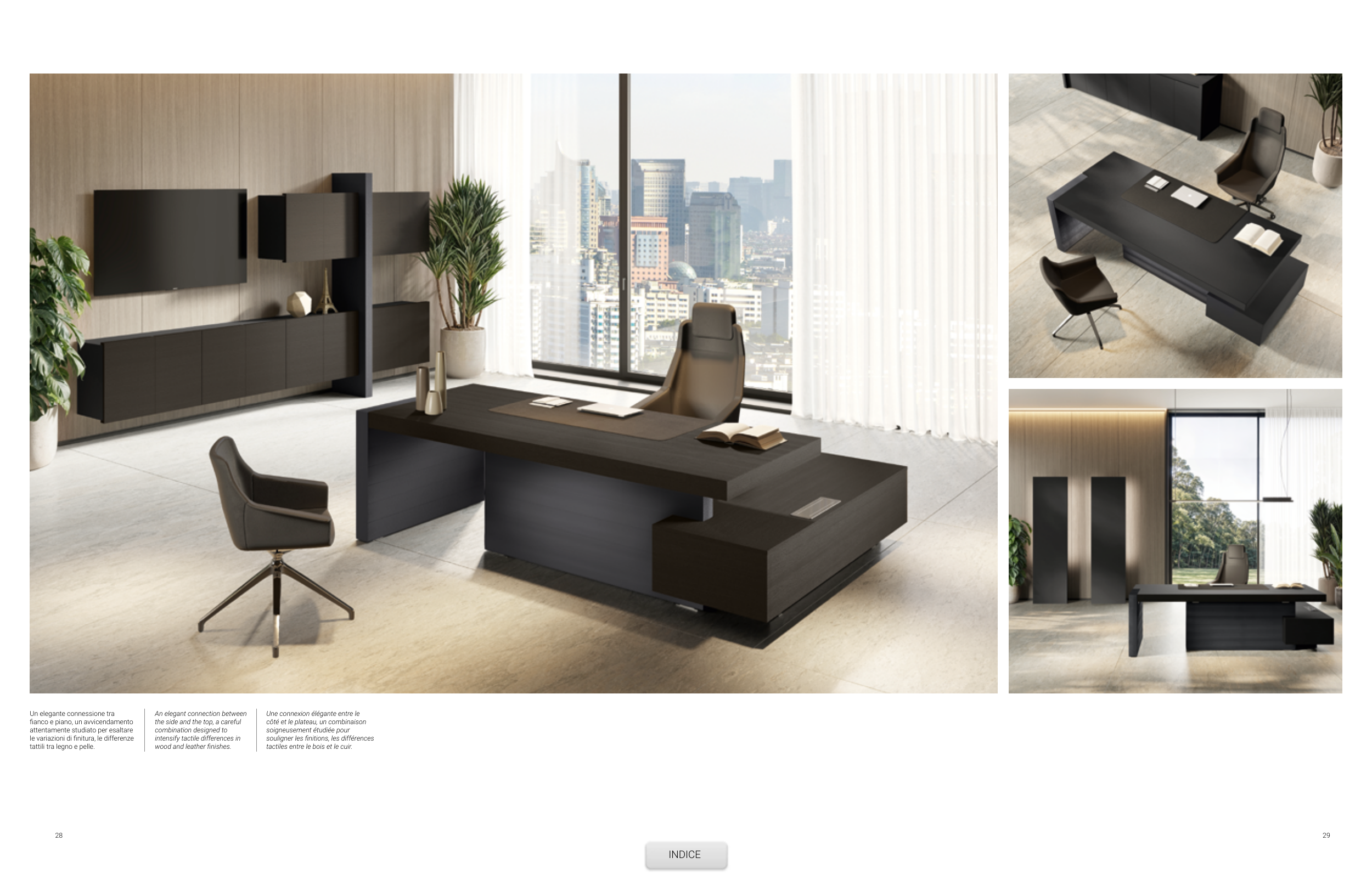wood and leather finishes.