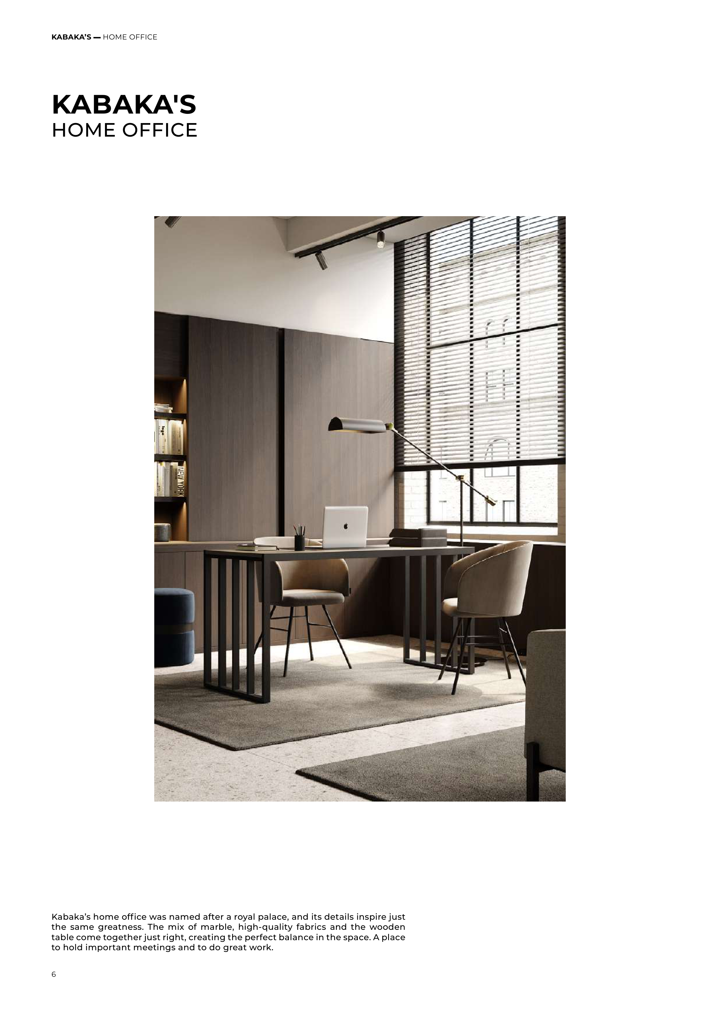 the same greatness. The mix of marble, high-quality fabrics and the wooden