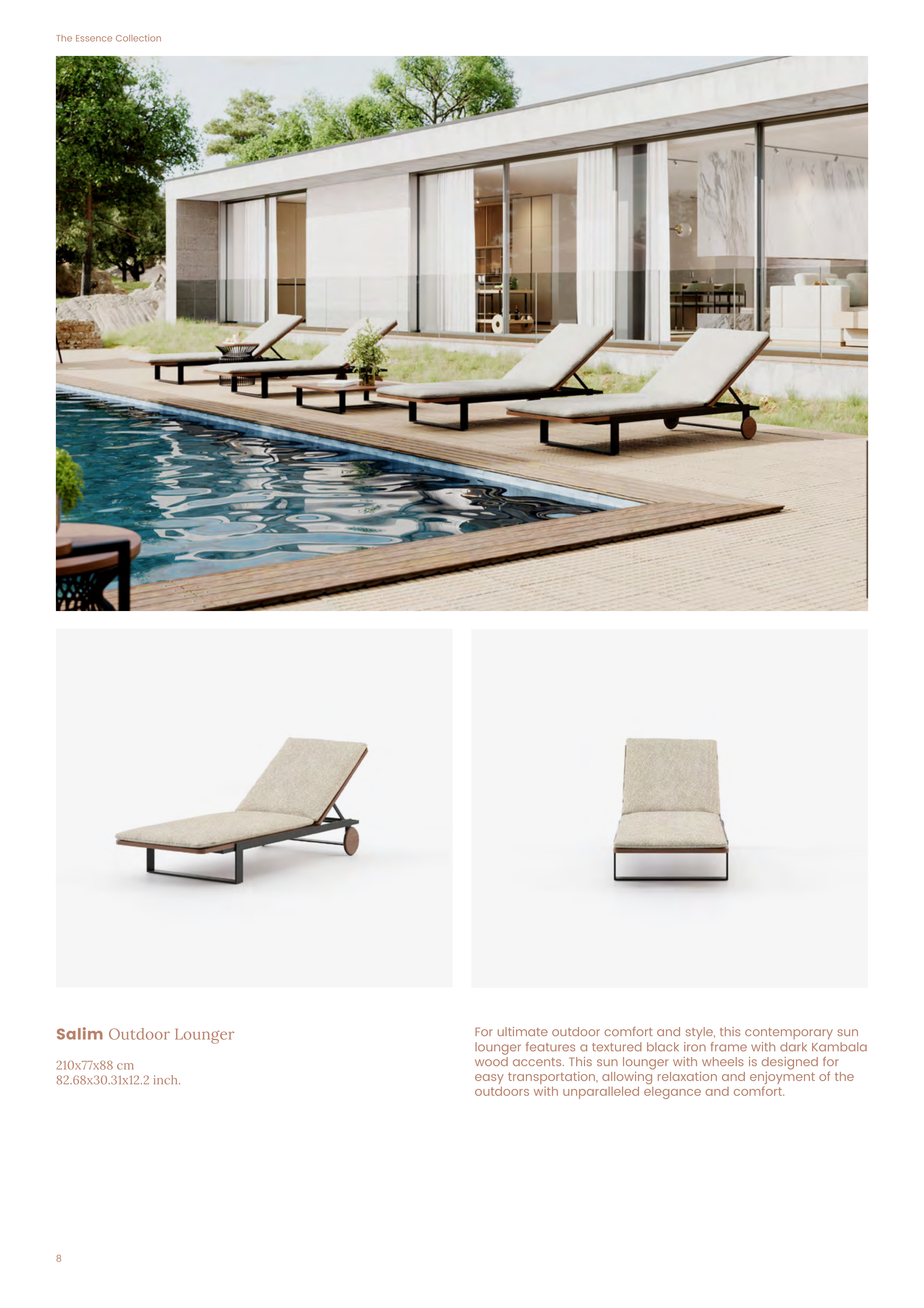 wood accents. This sun lounger with wheels is designed for