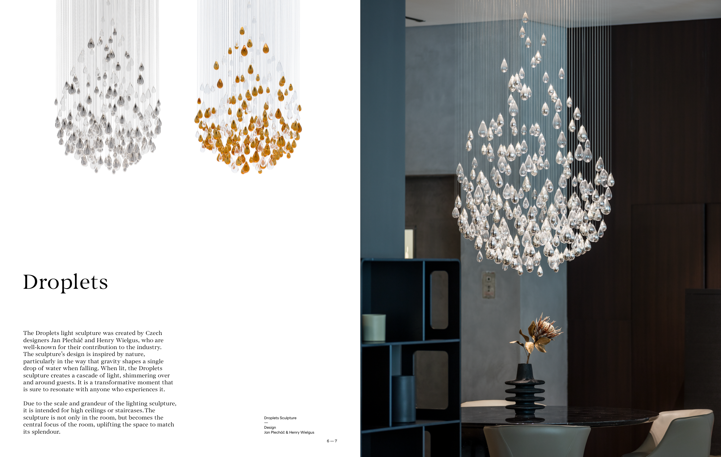 drop of water when falling. When lit, the Droplets