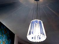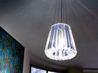 Provocatively ice clear “pleated” lamp-shades with right angle cranked legs stand in contrast with the ornamental composition of shadows that appear on the walls after you switch on the light. The classical design together with an optical projection merges into an unexpected form of peculiar “romantic functionalism”. Light, its reflections on the sharp-cut edges of glass and shadows are the main means of perception and depicting of the space and matter providing possibility to seize them and create an outstanding atmosphere and mood at the same time. The shadow and light are not of material substance by themselves but yet define them, reflect, hide and unveil them even though they are only an optical illusion – an insubstantial postscript. Shadows are virtually all around, but only those thrown by the Glitters collection are capable of creating neat and magnificent make-up of the space, day and night. Light, translucent texture of the glass and striking expressiveness have the ability to call forth memories but also enhance plastic beauty of the room and make it real, more real, for the shadows that always reveal more than the light itself.