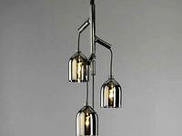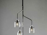 The Labyrinth is inspired by fluidity, connections, nature and relationships… The fabric covered colored electric cables enter the Borosilicate glass tube and exit at different locations from which light bell form shades are hanging. The labyrinth stem can be placed in various locations along the wires and create a sensation of suspension in space.