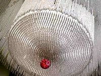 Showing off the magnificence of hundreds of tiny glass beads, Daniel Jaček’s one-of-a-kind design, Loving Art Deco, portrays a stunning visual masterpiece resembling a filigree lace bridal veil. Full of beads, this elegant lighting sculpture amazes hotel visitors. Creating a crystal-clear shape, Jaček designs magnificent light sculptures intended to occupy the central space of a room without detracting from the room itself. Reference: Four Seasons Hotel, London, UK.