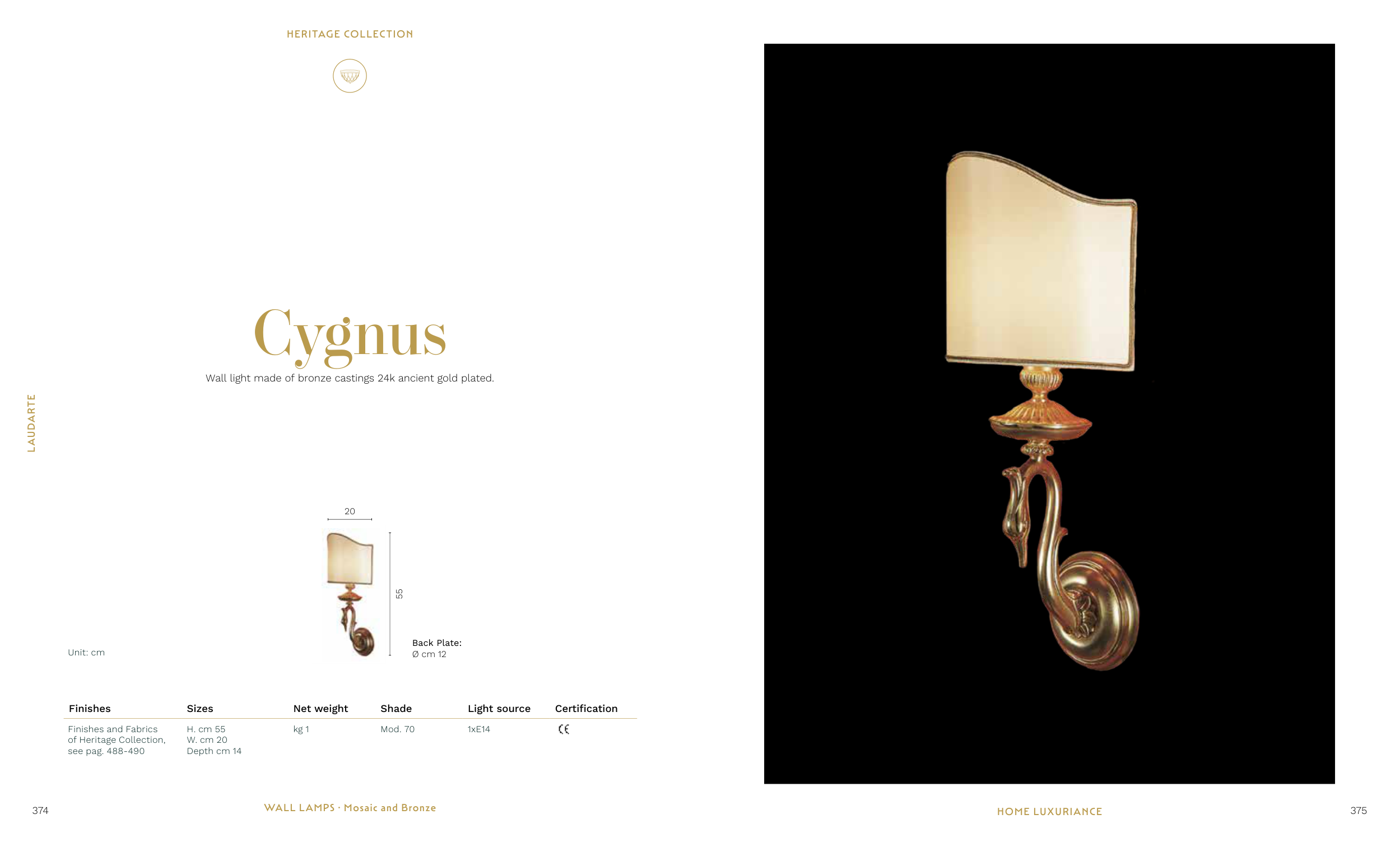 Wall light made of bronze castings 24k ancient gold plated.