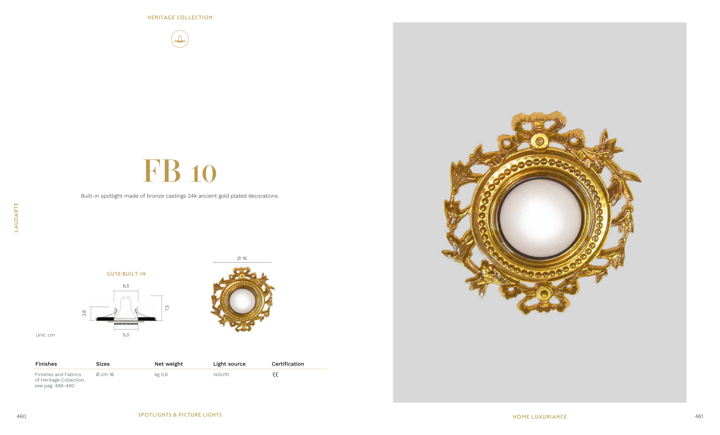 Built-in spotlight made of bronze castings 24k ancient gold plated decorations.