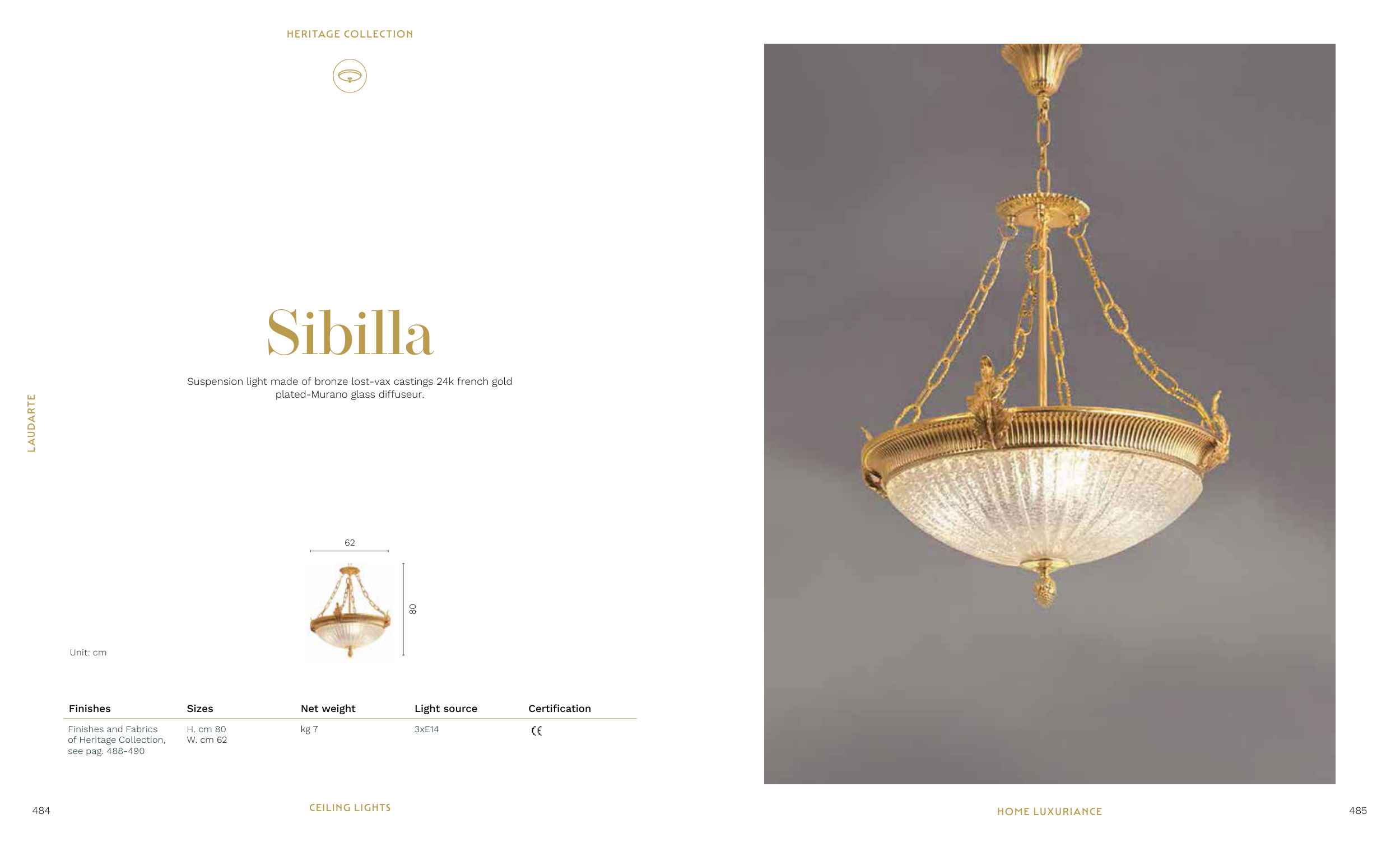 Suspension light made of bronze lost-vax castings 24k french gold