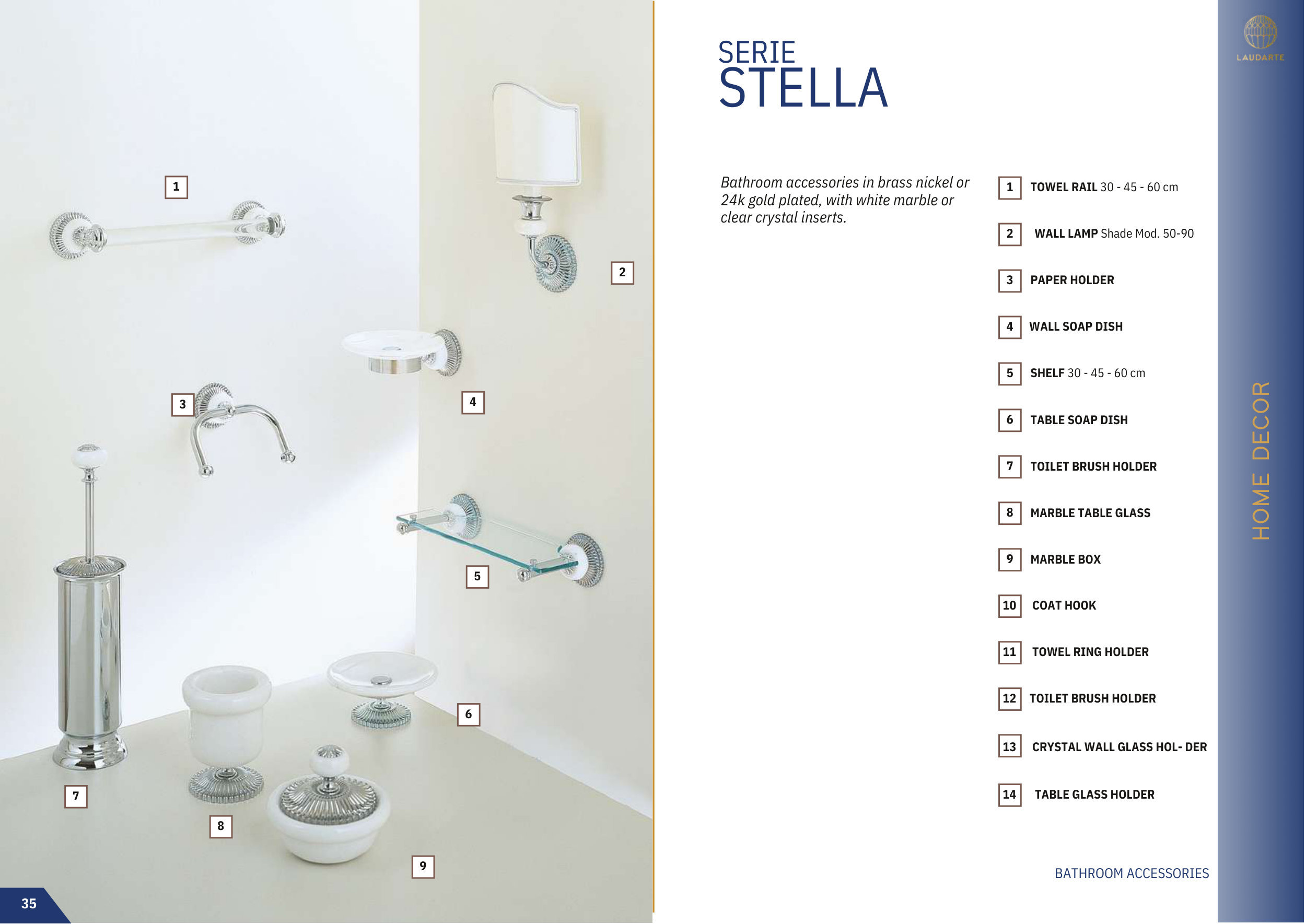 Bathroom accessories in brass nickel or