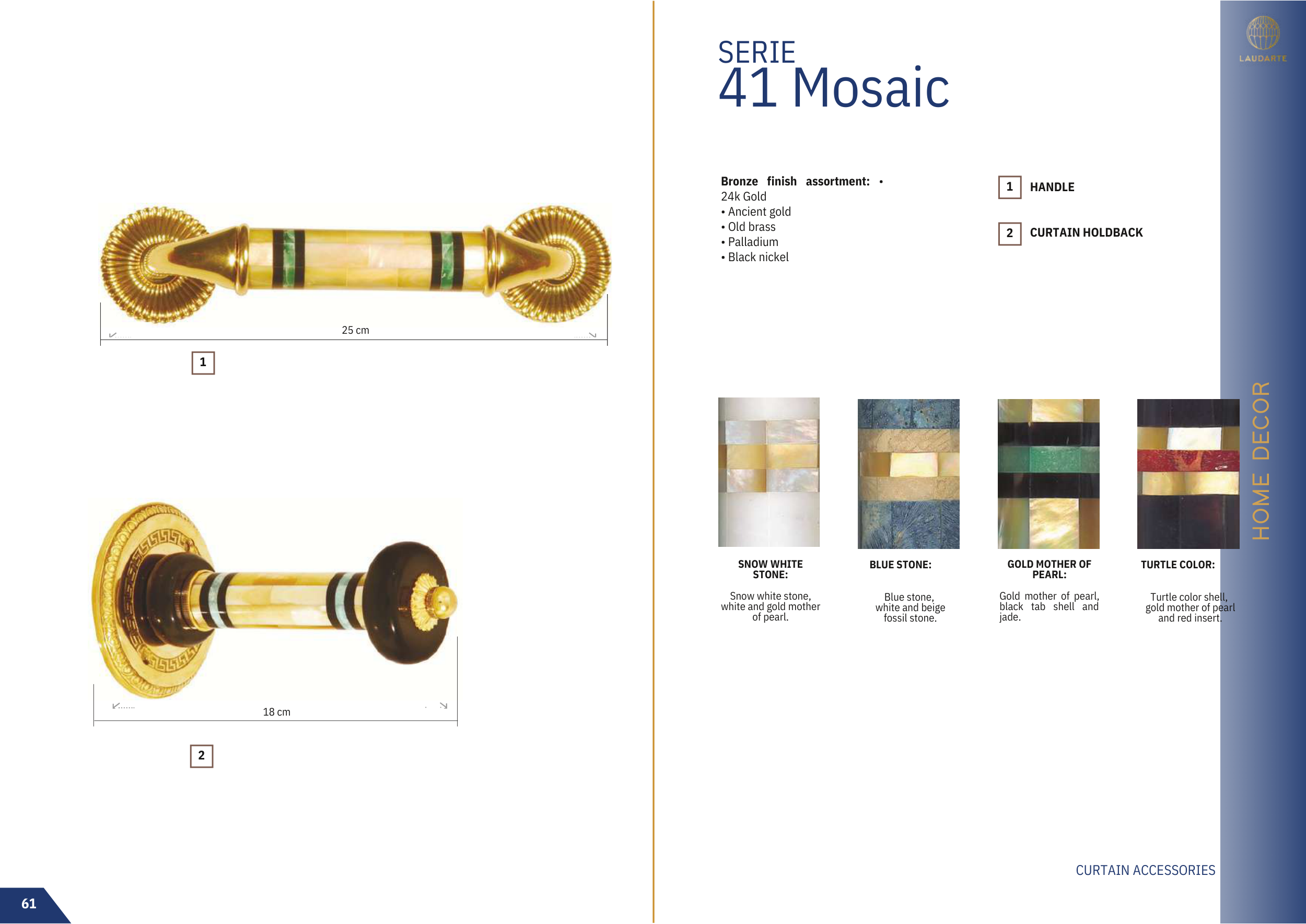 Bronze finish assortment: •
