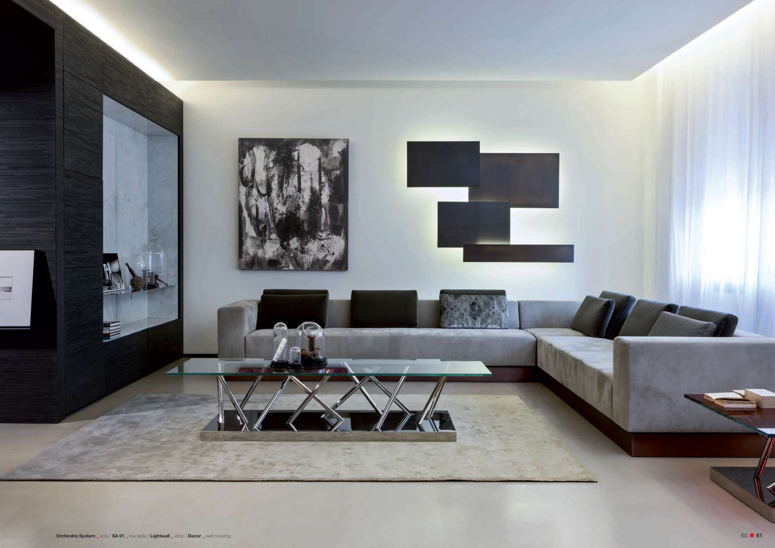 Orchestra System sofa / SA 01 low table / Lightwall lamp / Decor wall covering