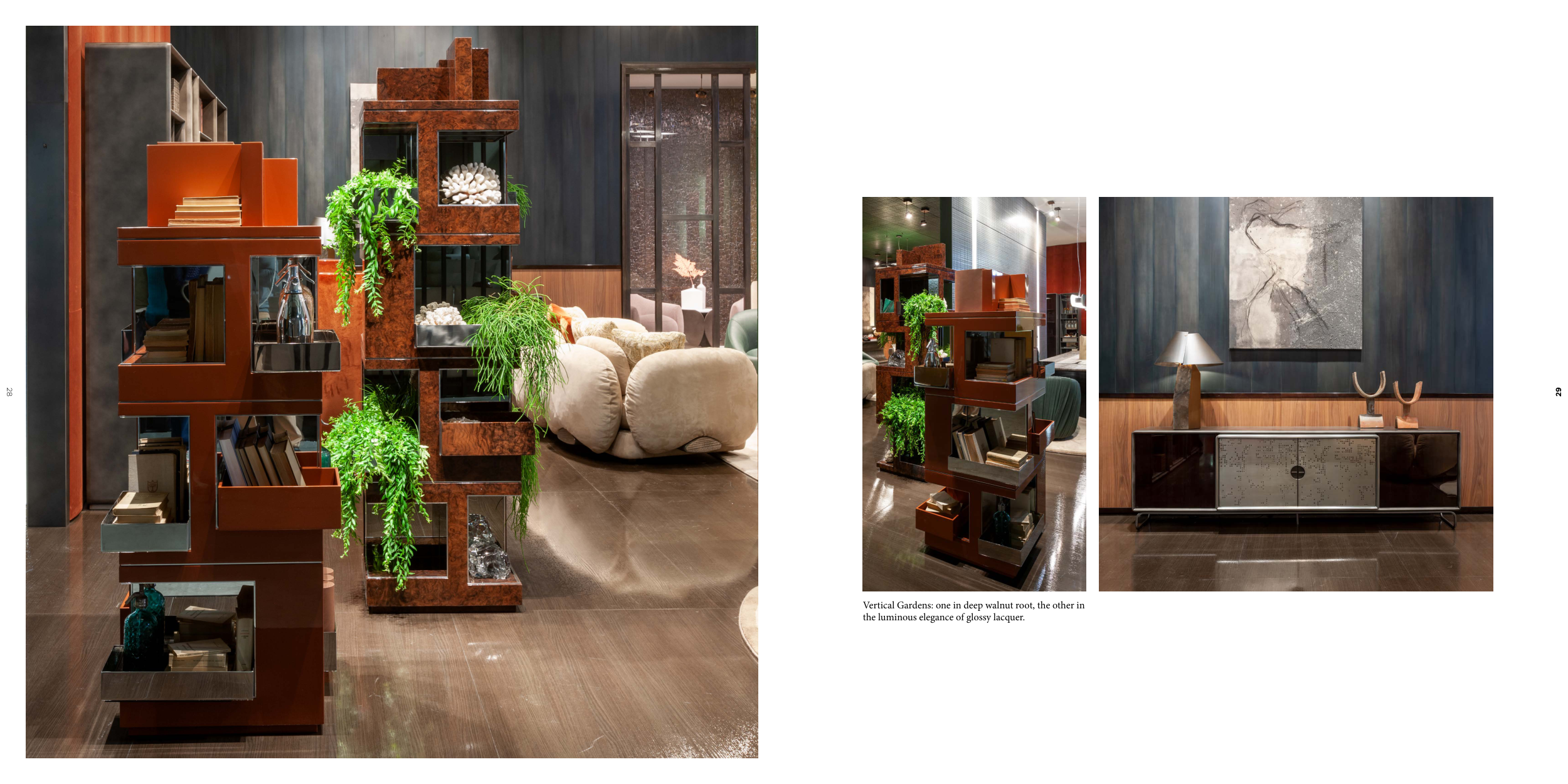 Vertical Gardens: one in deep walnut root, the other in
