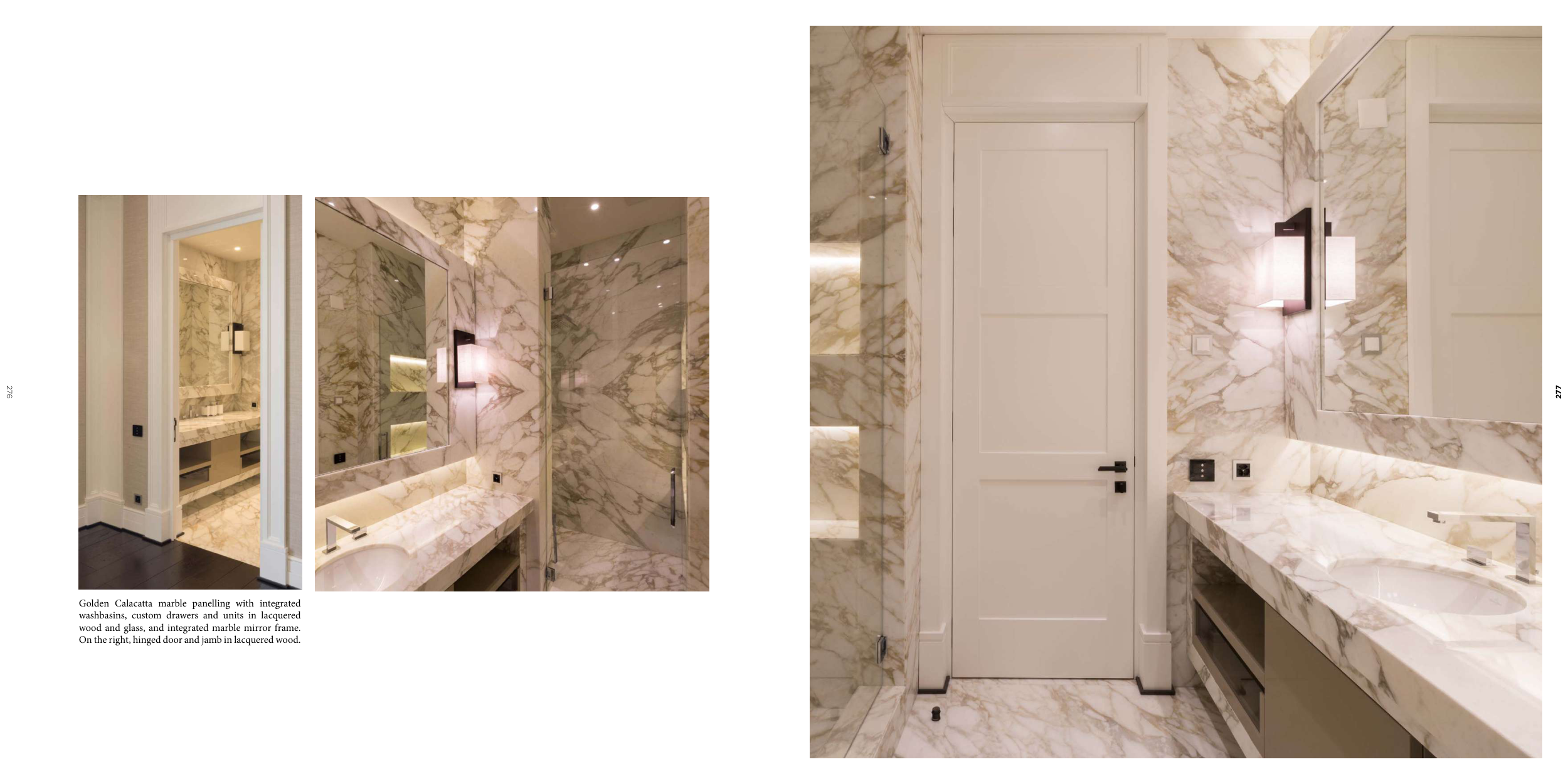 Golden Calacatta marble panelling with integrated