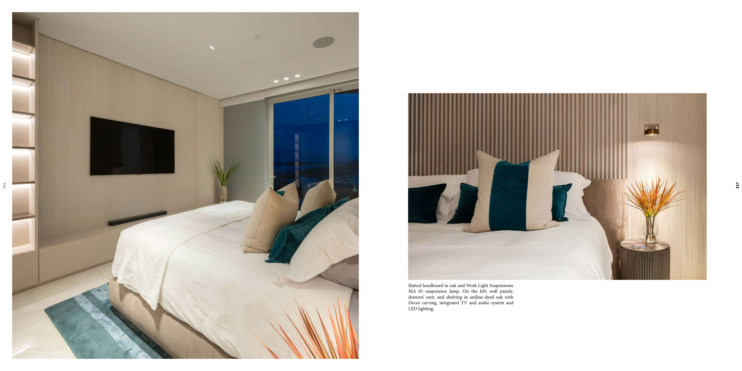 Slatted headboard in oak and Work Light Sospensione