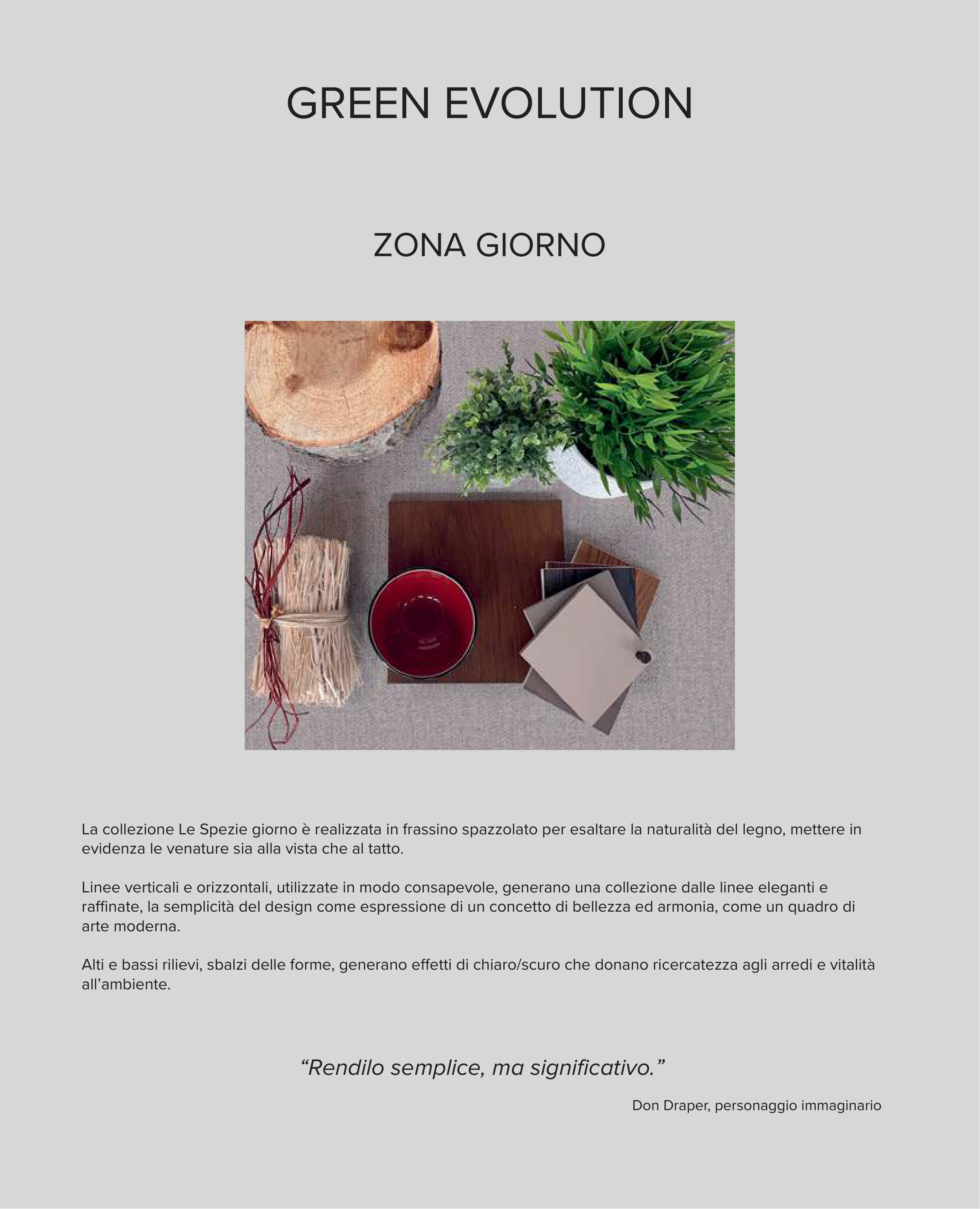 La collezione Le Spezie giorno è realizzata in frassino spazzolato per esaltare la naturalità del legno, mettere in