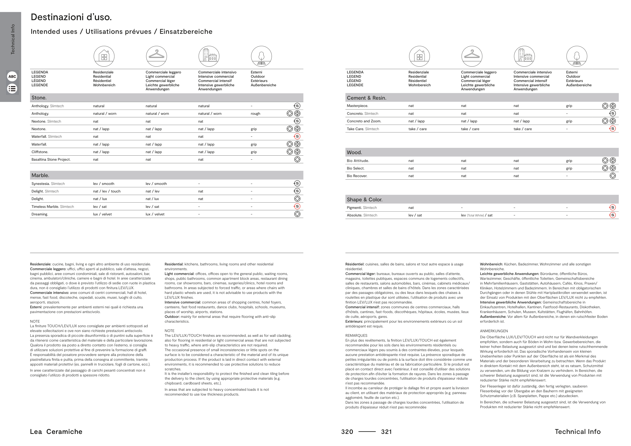 The LEV/LUX/TOUCH finishes are recommended, as well as for wall cladding,