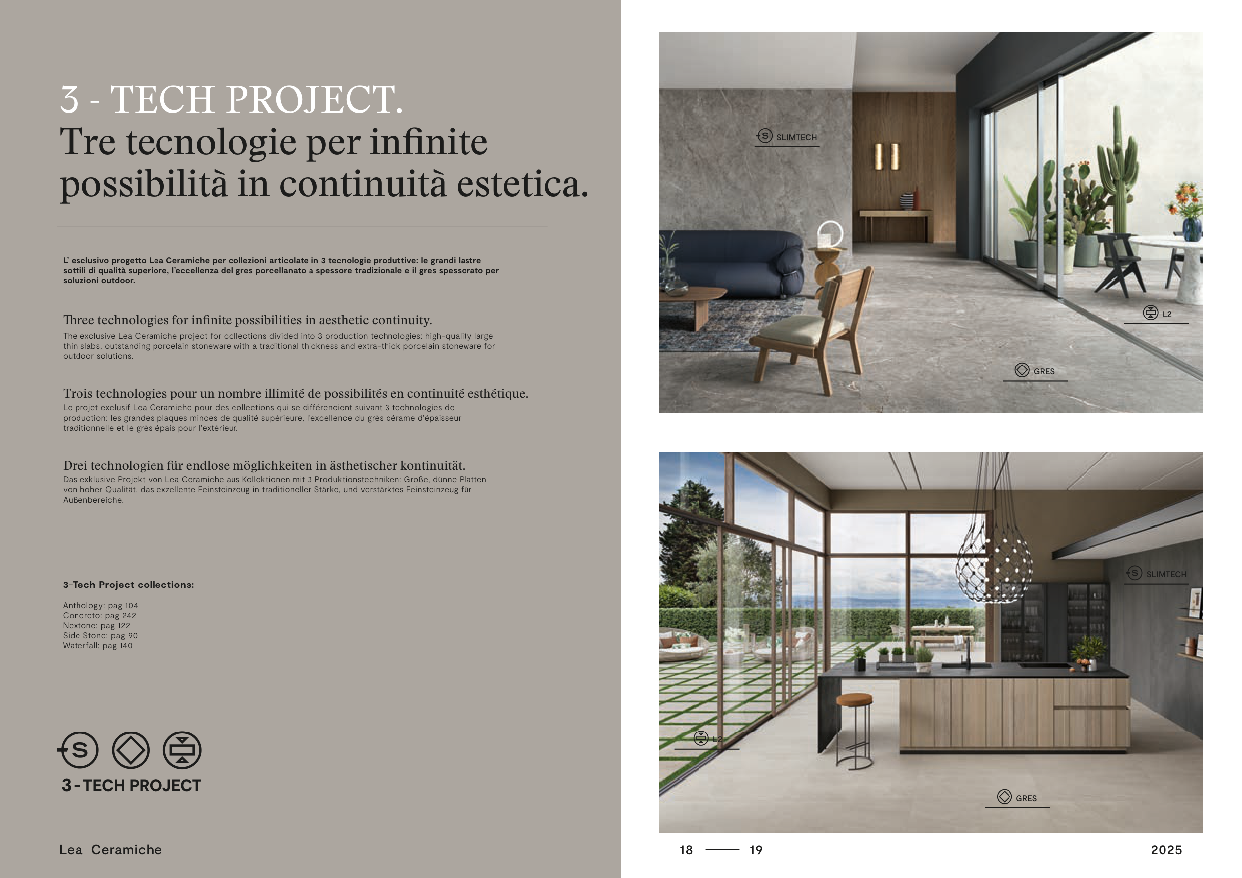 The exclusive Lea Ceramiche project for collections divided into 3 production technologies: high-quality large