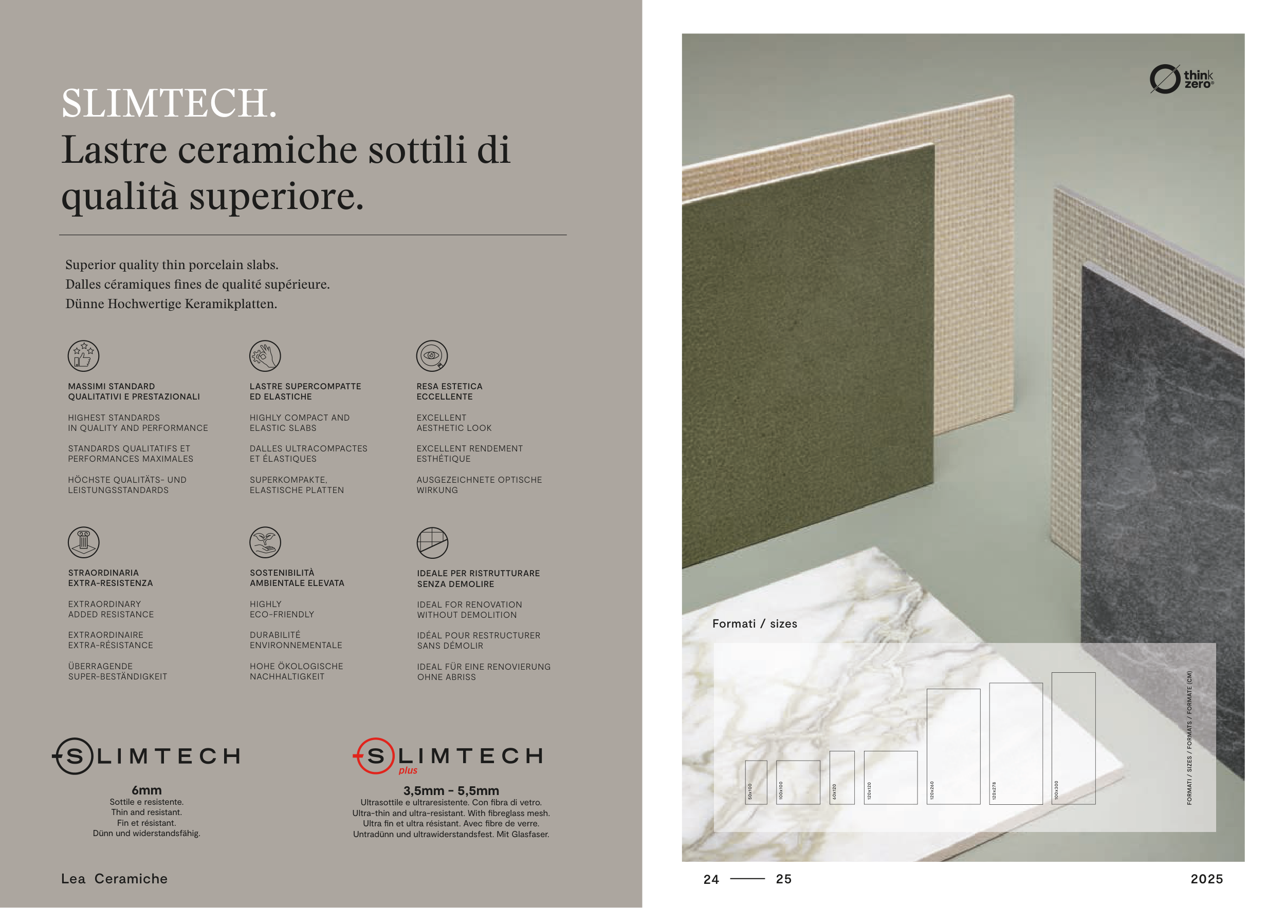 Dalles céramiques fines de qualité supérieure.