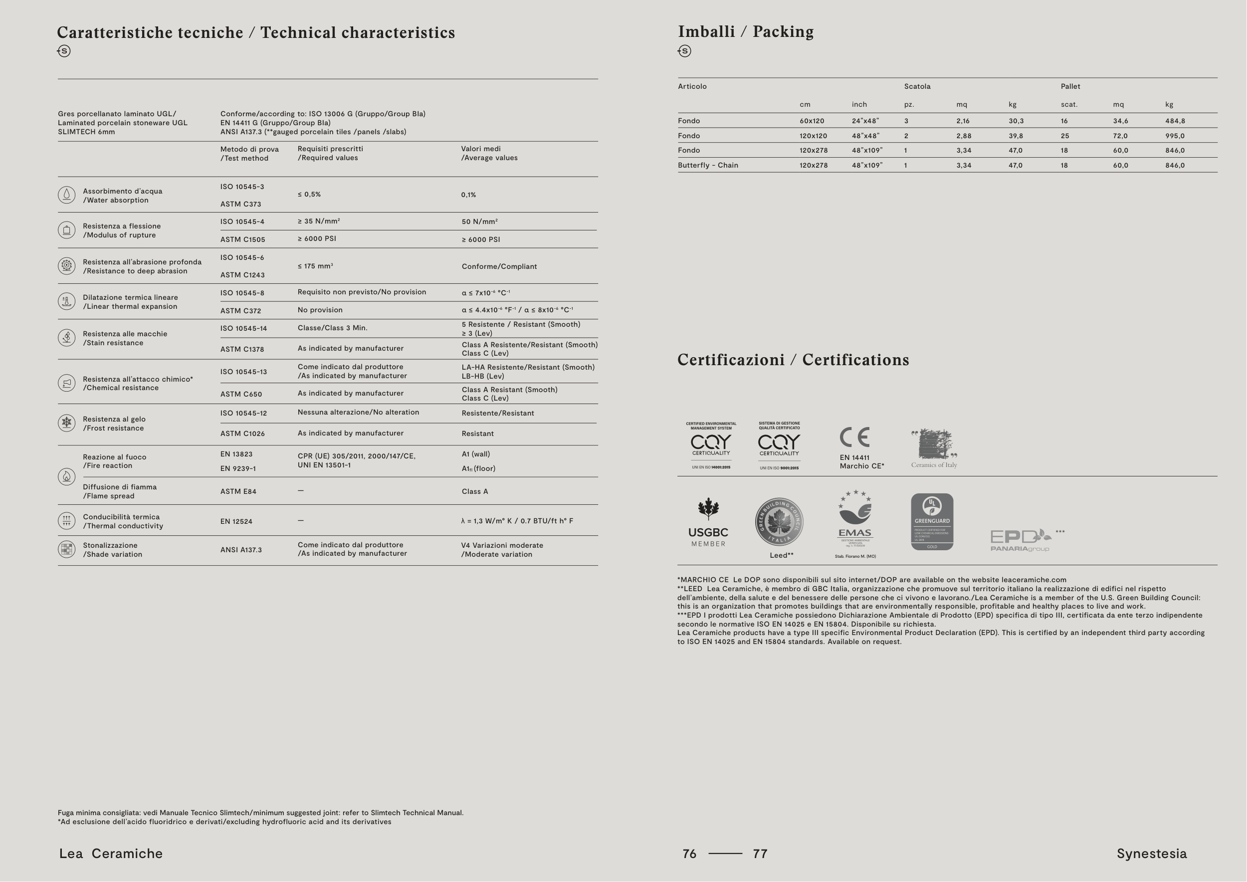 Lea Ceramiche products have a type III specific Environmental Product Declaration (EPD). This is certified by an independent third party according