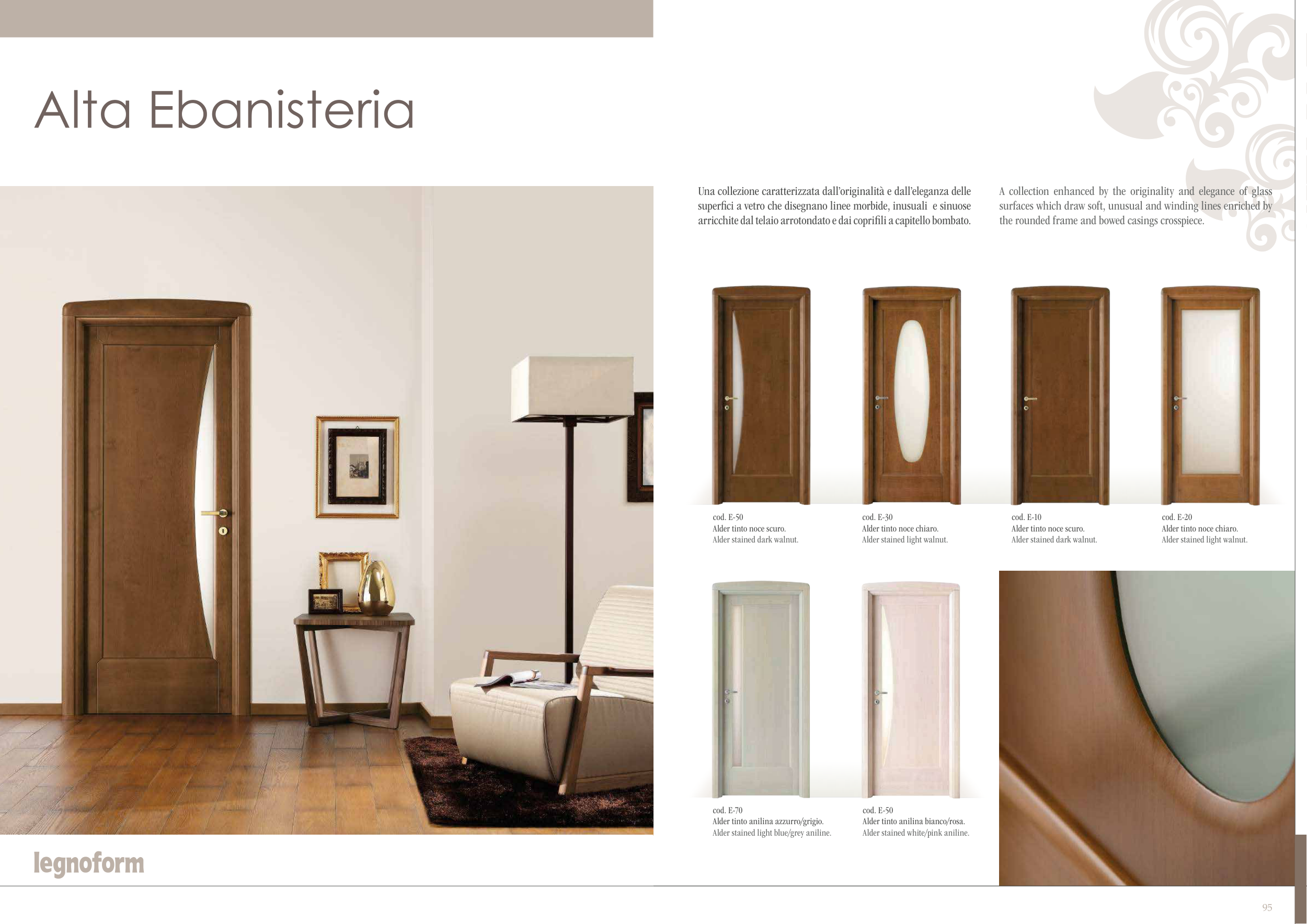 arricchite dal telaio arrotondato e dai coprifili a capitello bombato.