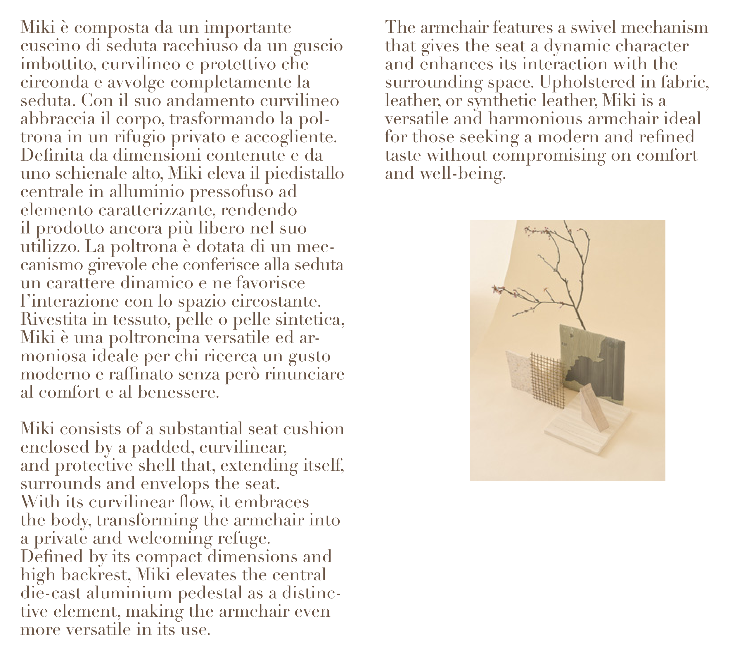 Miki consists of a substantial seat cushion