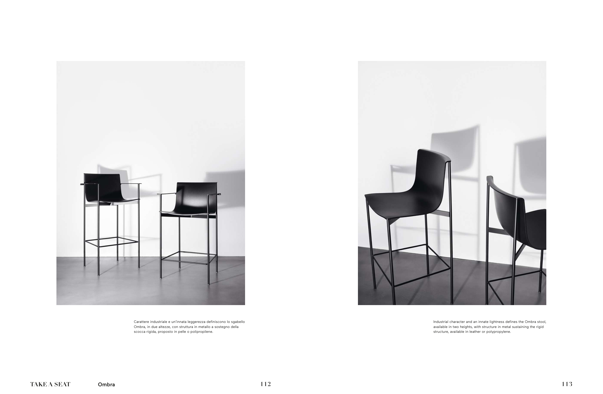 Industrial character and an innate lightness defines the Ombra stool,