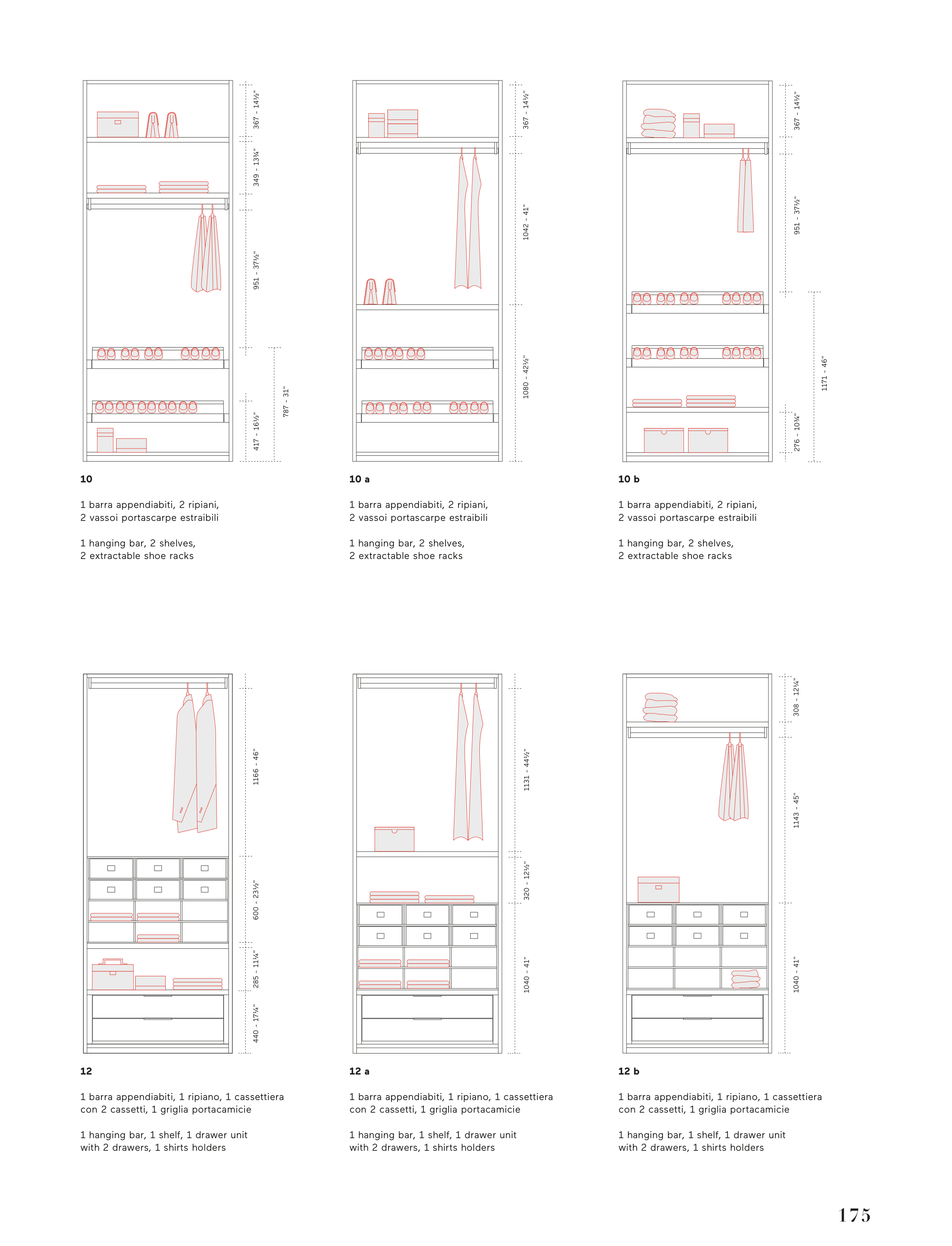 1 barra appendiabiti, 1 ripiano, 1 cassettiera