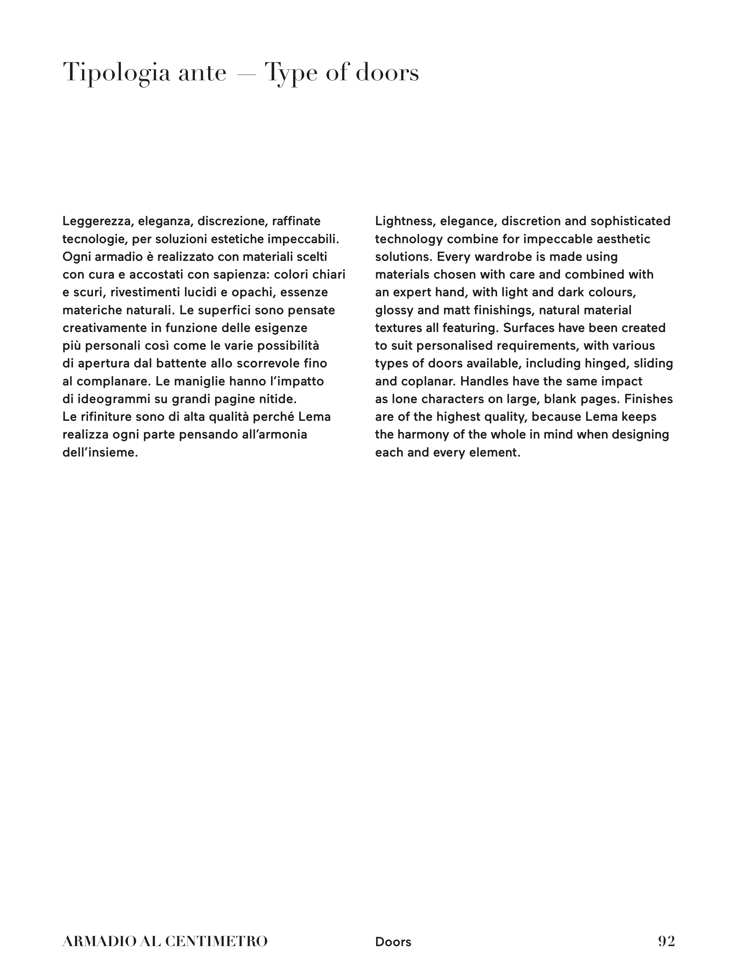 Tipologia ante — Type of doors
