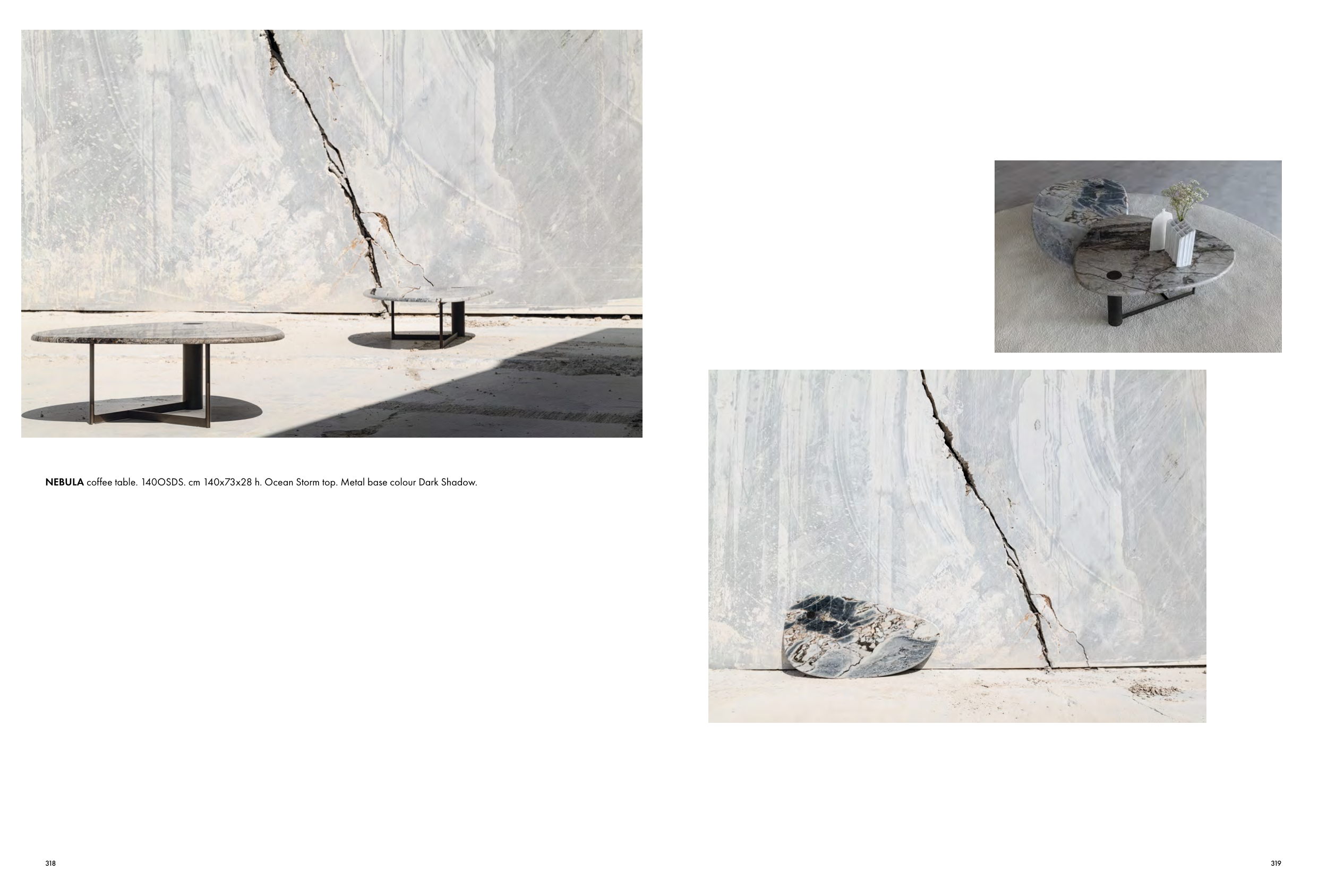 NEBULA coffee table. 140OSDS. cm 140x73x28 h. Ocean Storm top. Metal base colour Dark Shadow.