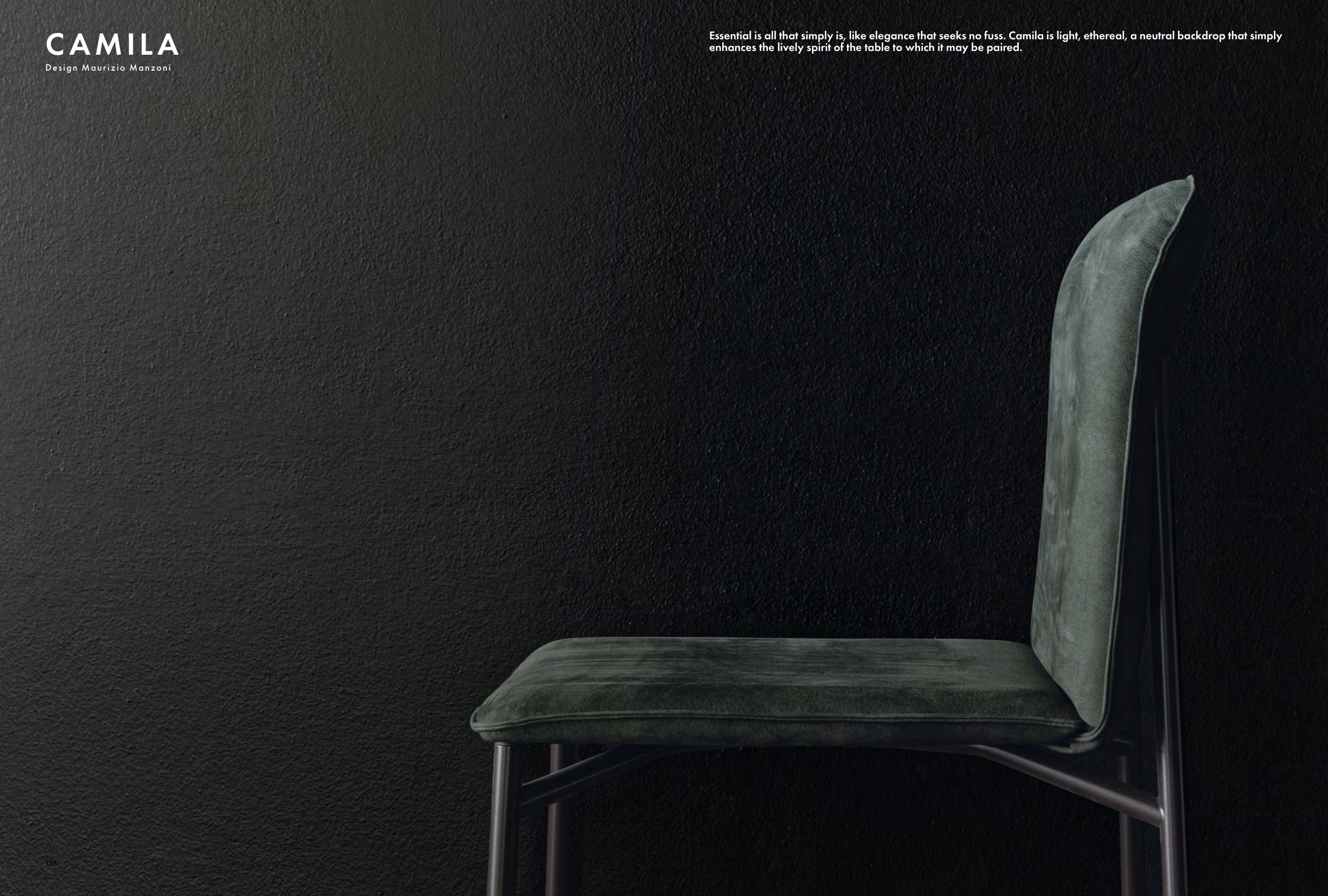 Essential is all that simply is, like elegance that seeks no fuss. Camila is light, ethereal, a neutral backdrop that simply