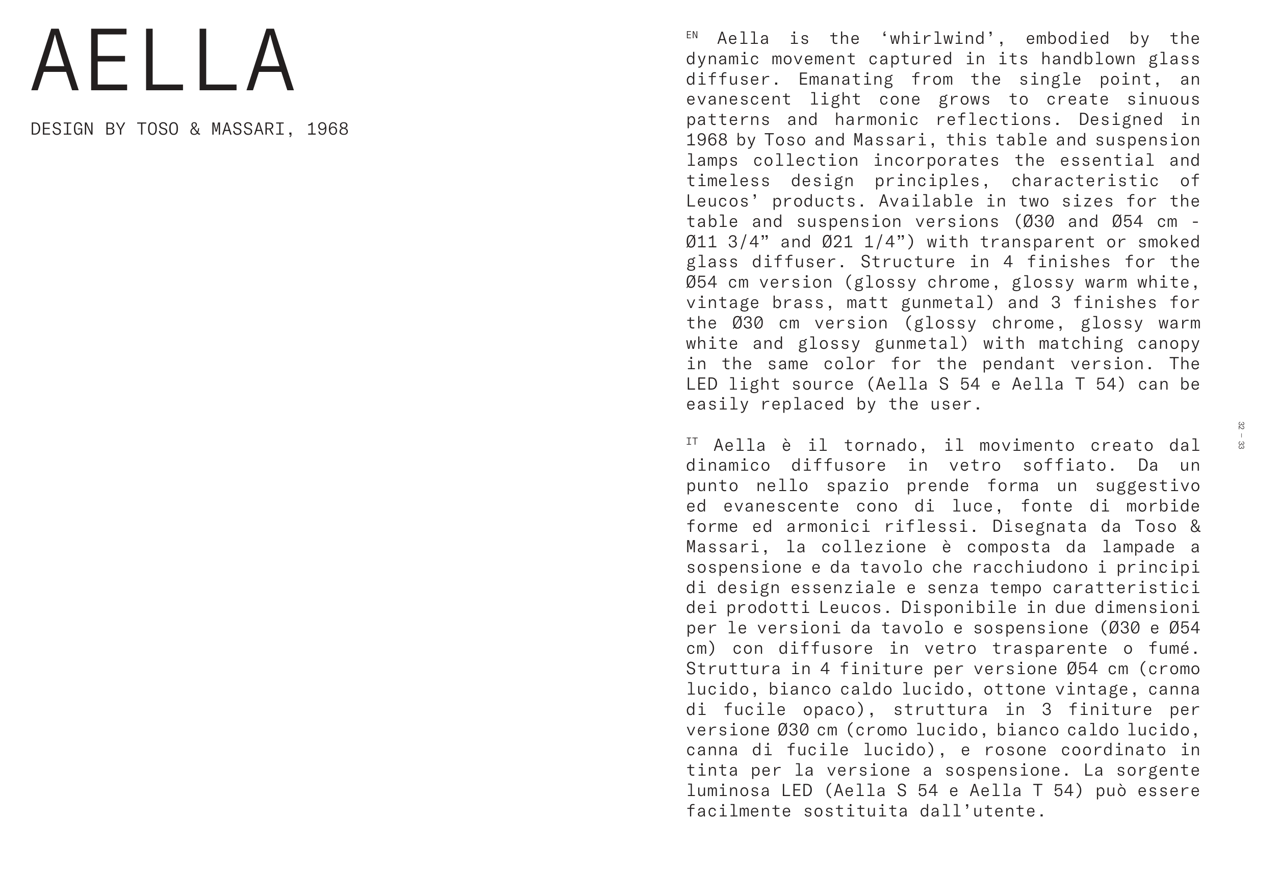table and suspension versions (Ø30 and Ø54 cm -